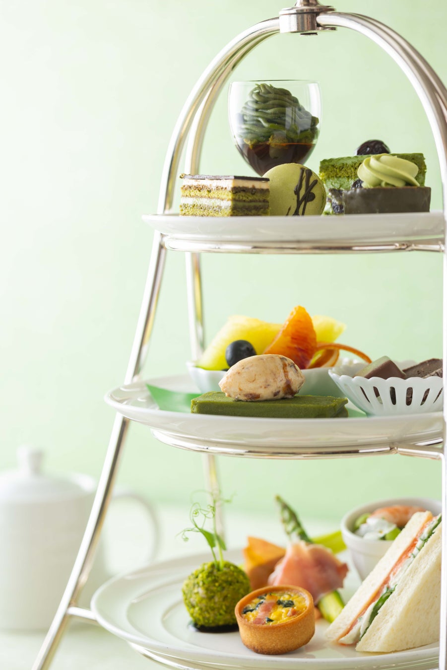 新茶の季節に相応しく、八十八夜にあたる5月1日より提供する新メニューを彩るのは、上質な抹茶を贅沢に使用した、香り高いスイーツたち。抹茶のモンブラン、オペラ、ブラウニーなど、味わい深く優雅な色彩も目を引きます。