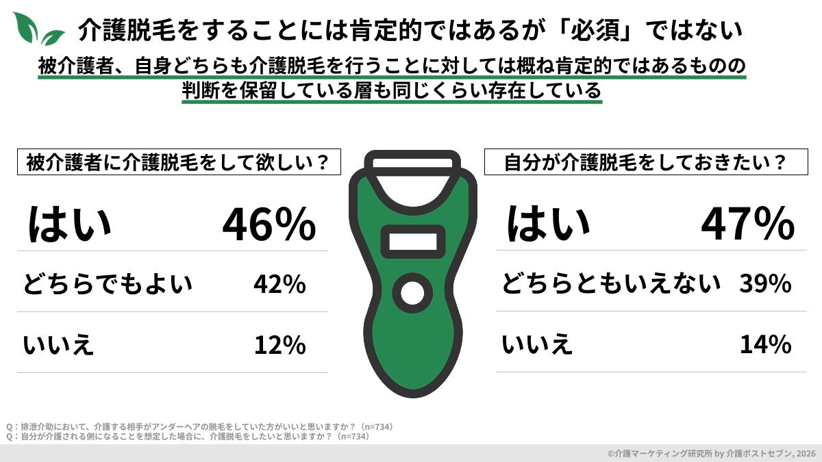 出典:介護脱毛は本当に必要?2,784人調査で判明した負担軽減と意思尊重との葛藤(介護マーケティング研究所 by 介護ポストセブン)