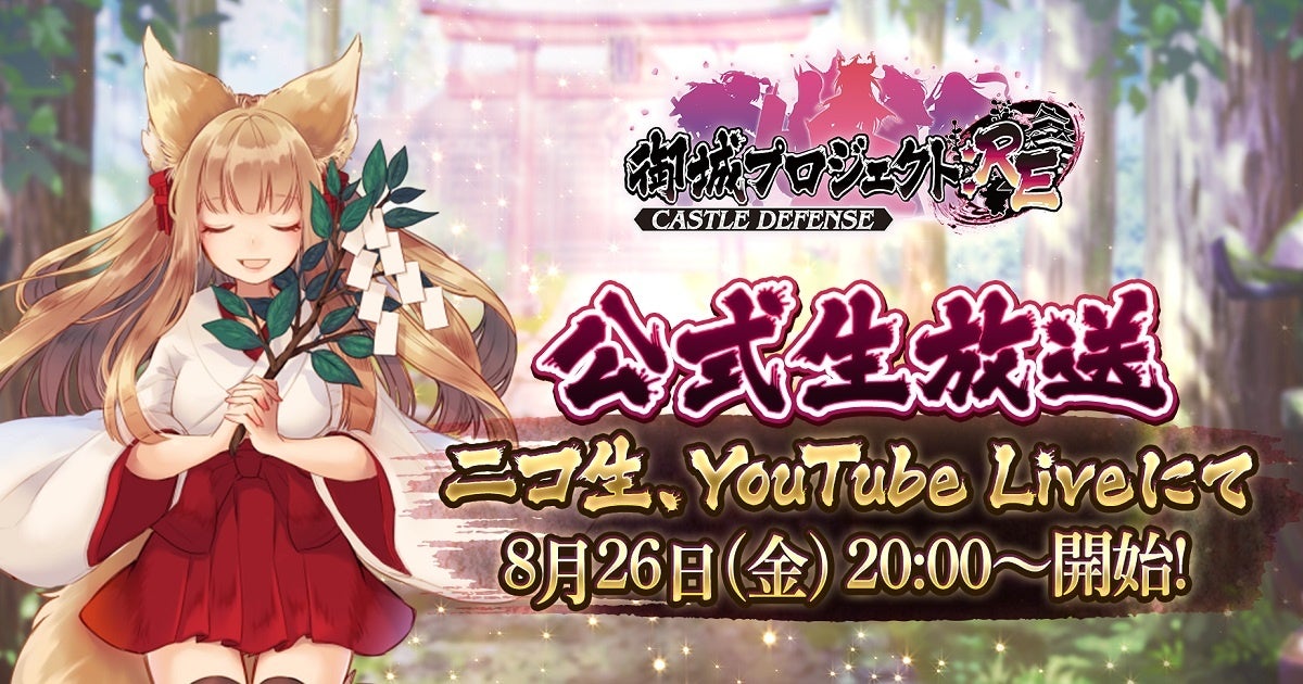 合同会社EXNOA(本社:東京都港区、CEO:村中 悠介、URL:https://games.dmm.com/)が運営するDMM GAMESの『御城プロジェクト:RE(以下、城プロ:RE)』において、8月26日(金)20時00分より、公式生放送を配信することをお知らせいたします。