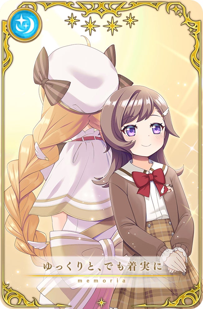 「★4メモリア交換チケット」ショップで、新登場のメモリア「子どもっぽいって言わないで!」「ゆっくりと、でも着実に」に加え、対象メモリアの中から好きなメモリアと交換することができるチケットです。