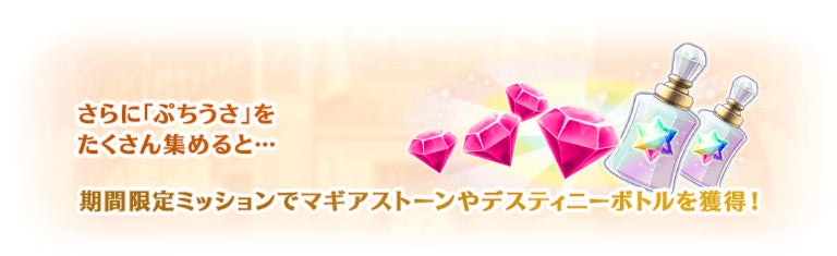 本イベントで獲得した「ぷちうさ」は限定メモリア「ただいま敵情視察中」や限定ホーム背景「恋は△ 愛は●」等、貴重なアイテムと交換できます。