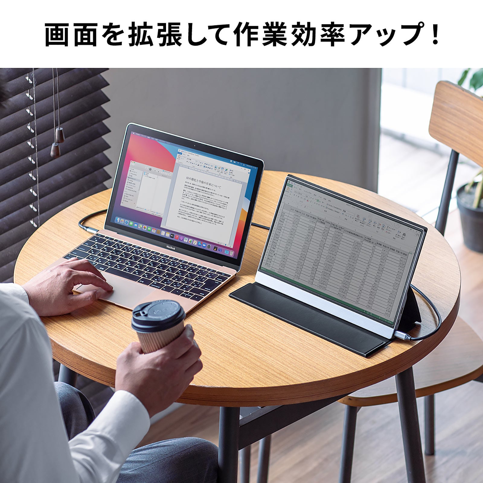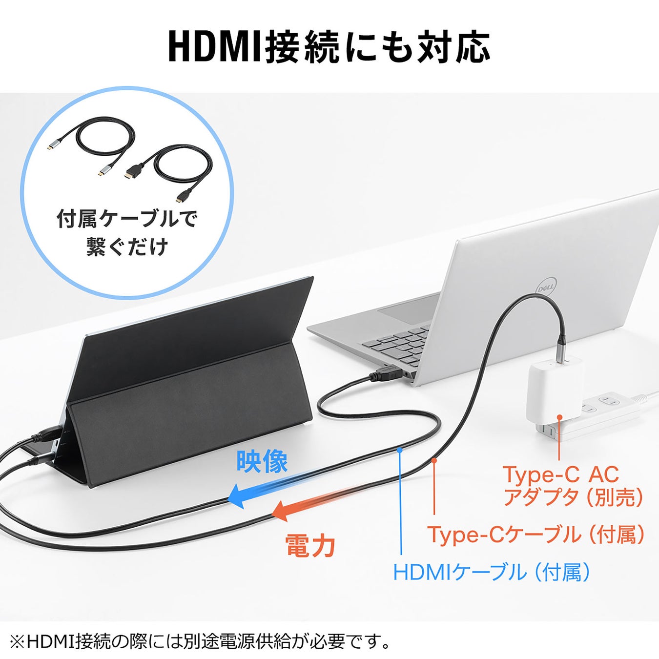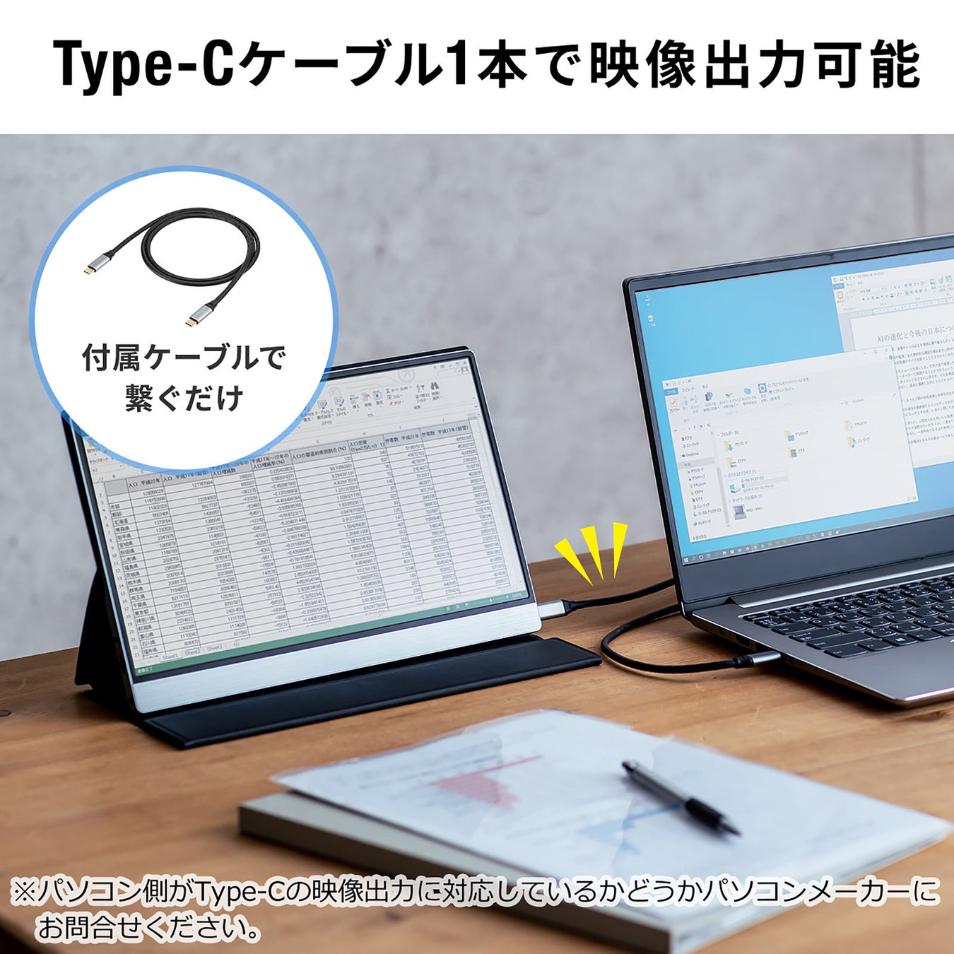 本製品は、USB Type-Cケーブル1本で接続できる、「DisplayPort Alt Mode」対応モバイルモニターです。