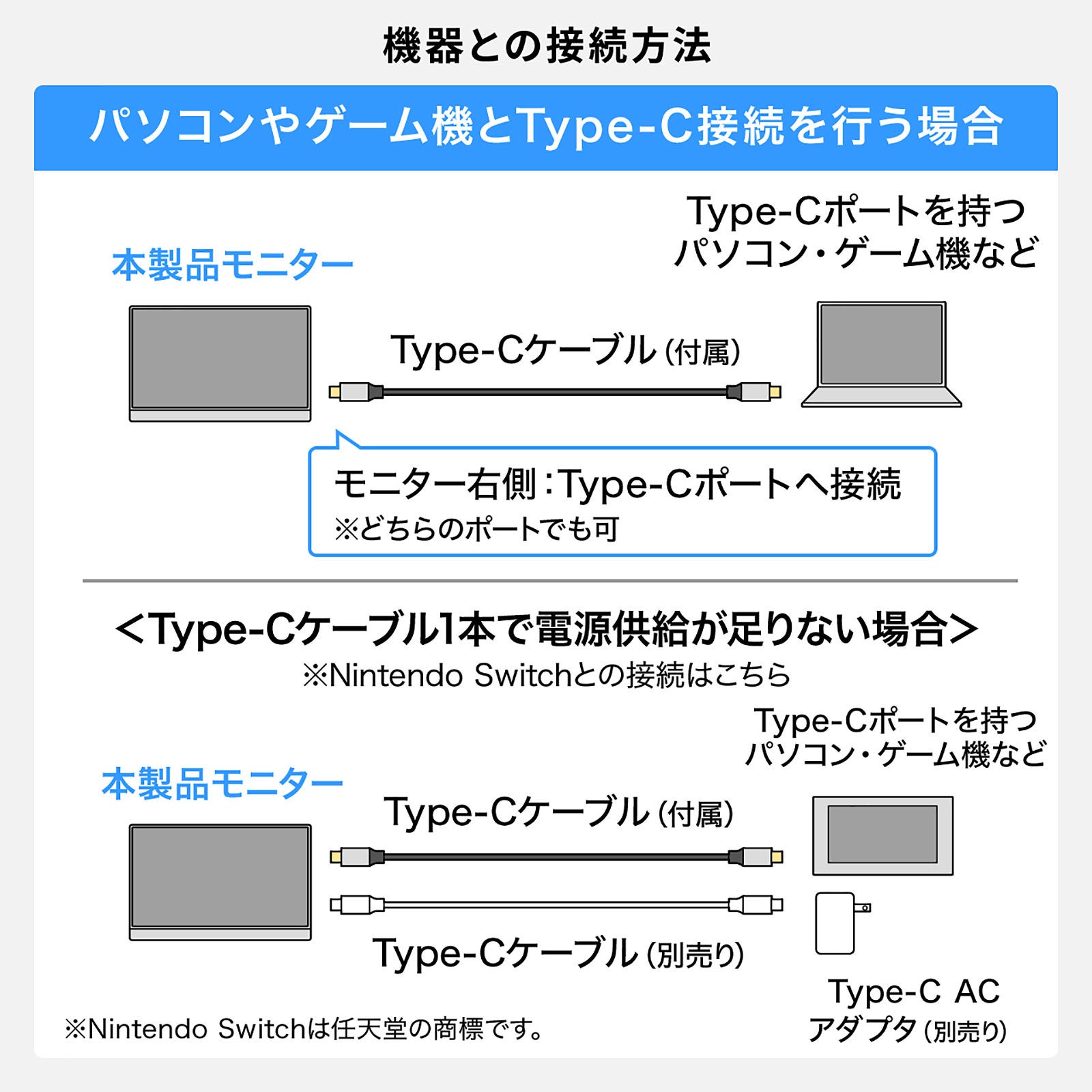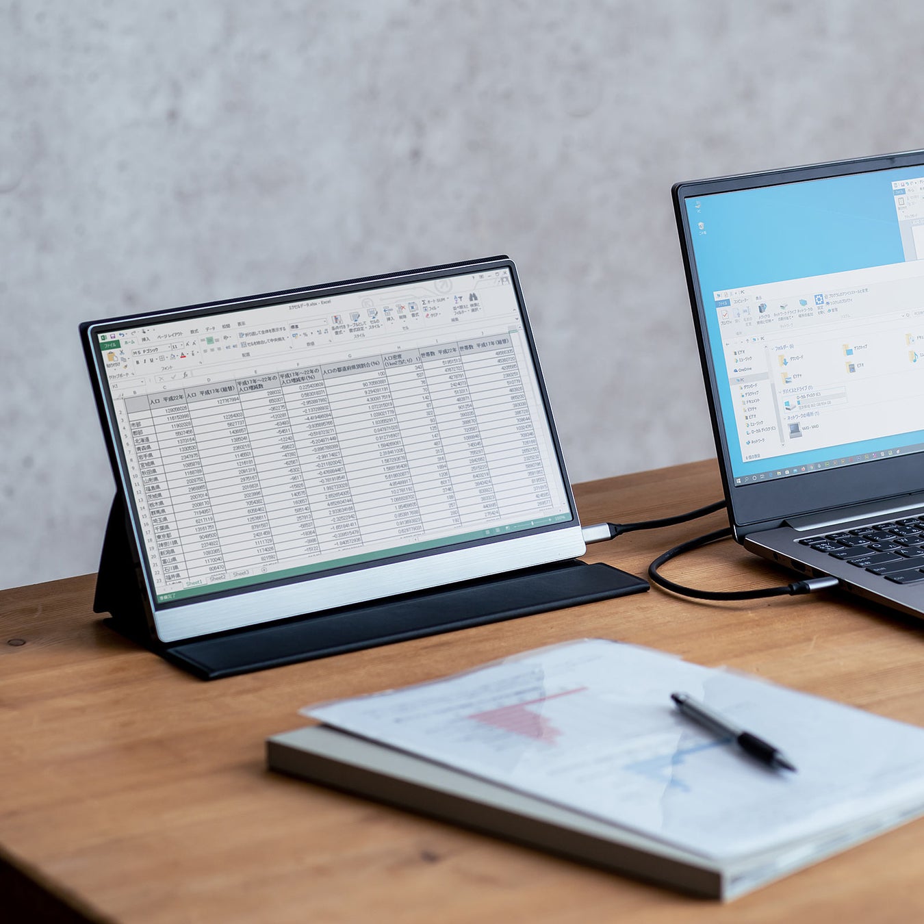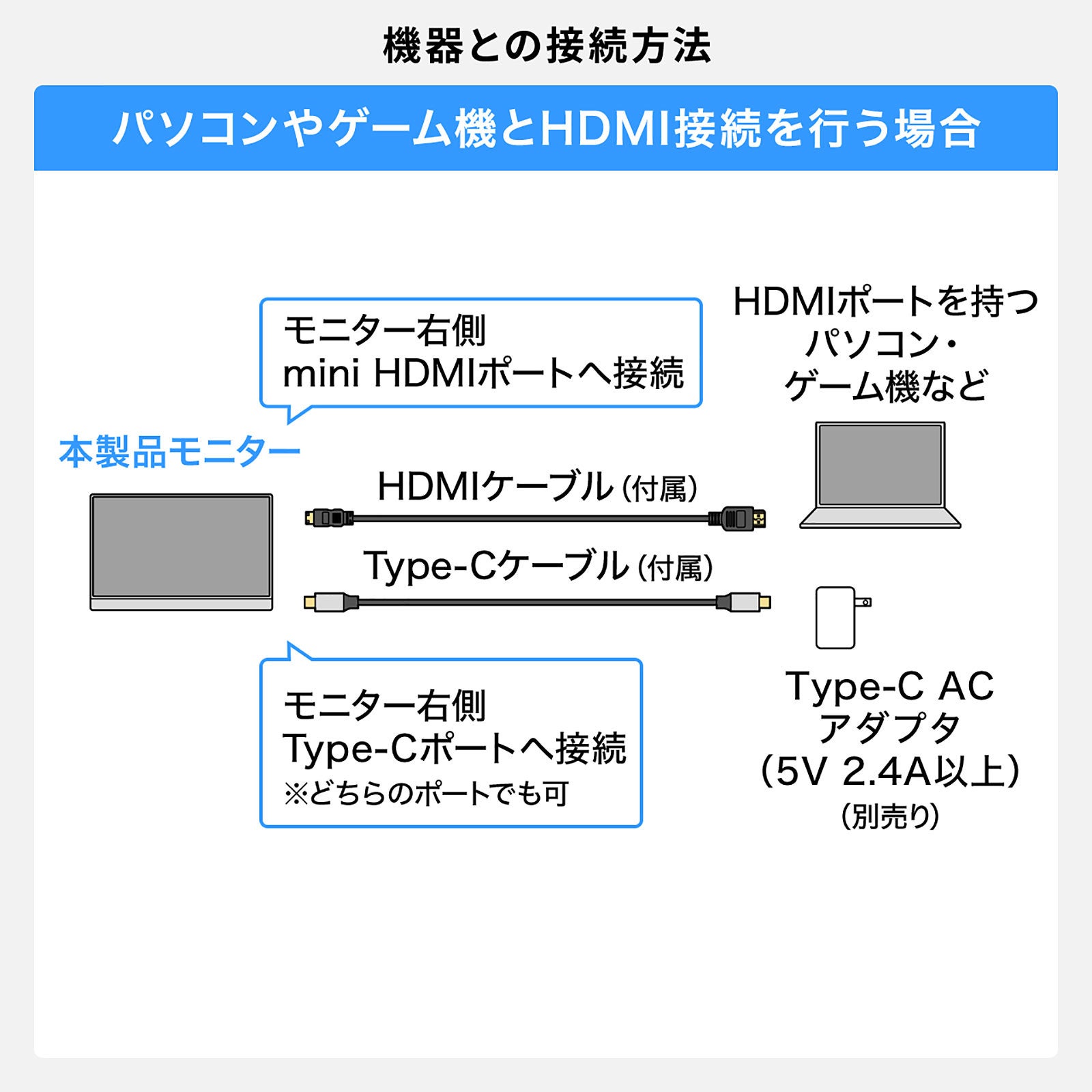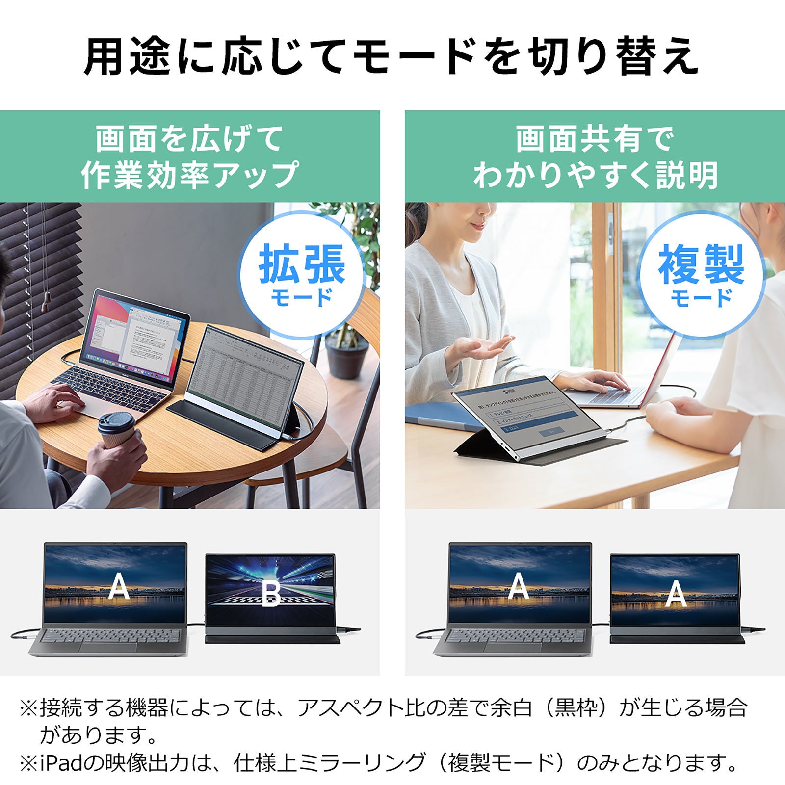 本製品は、USB Type-Cケーブル1本で接続できる、「DisplayPort Alt Mode」対応モバイルモニターです。