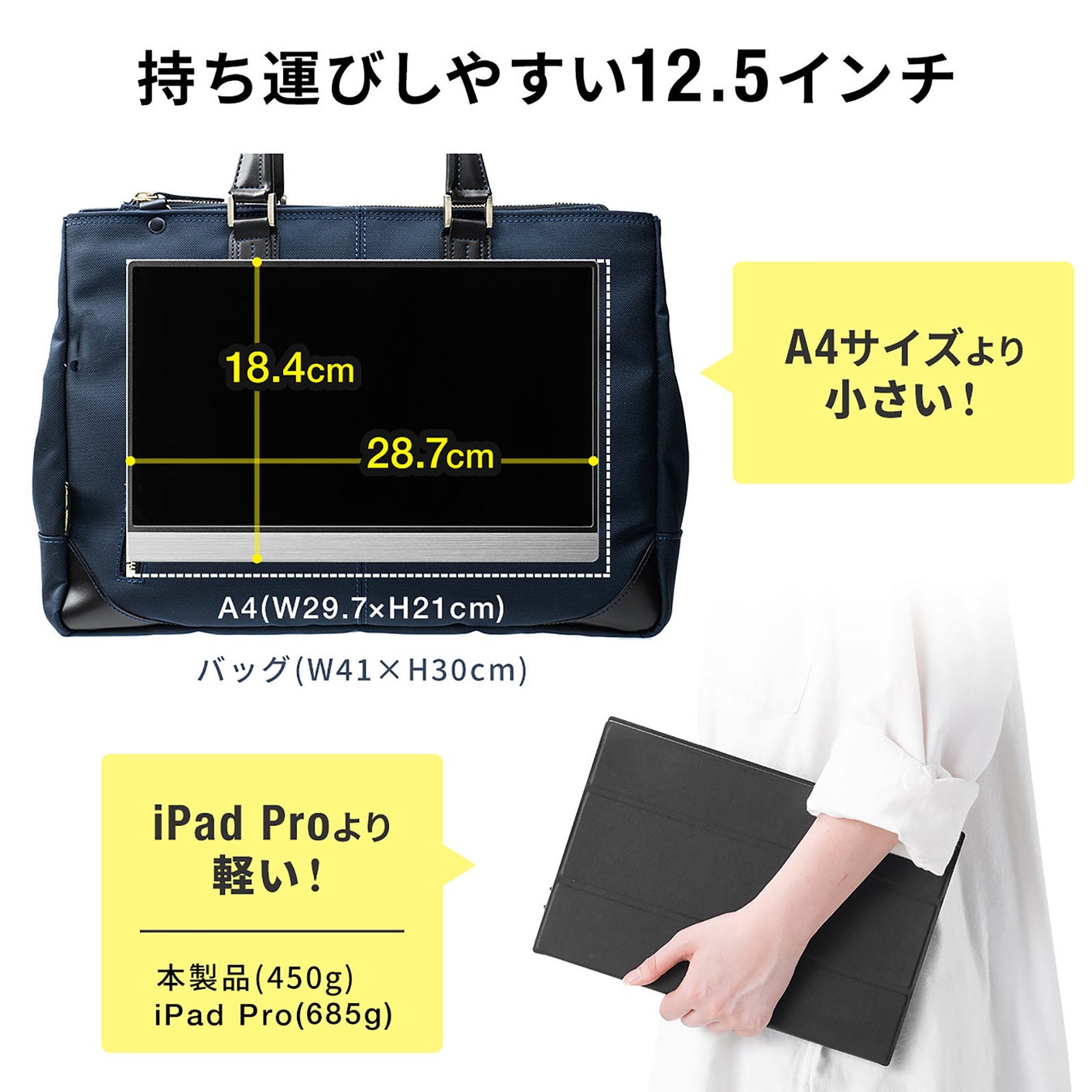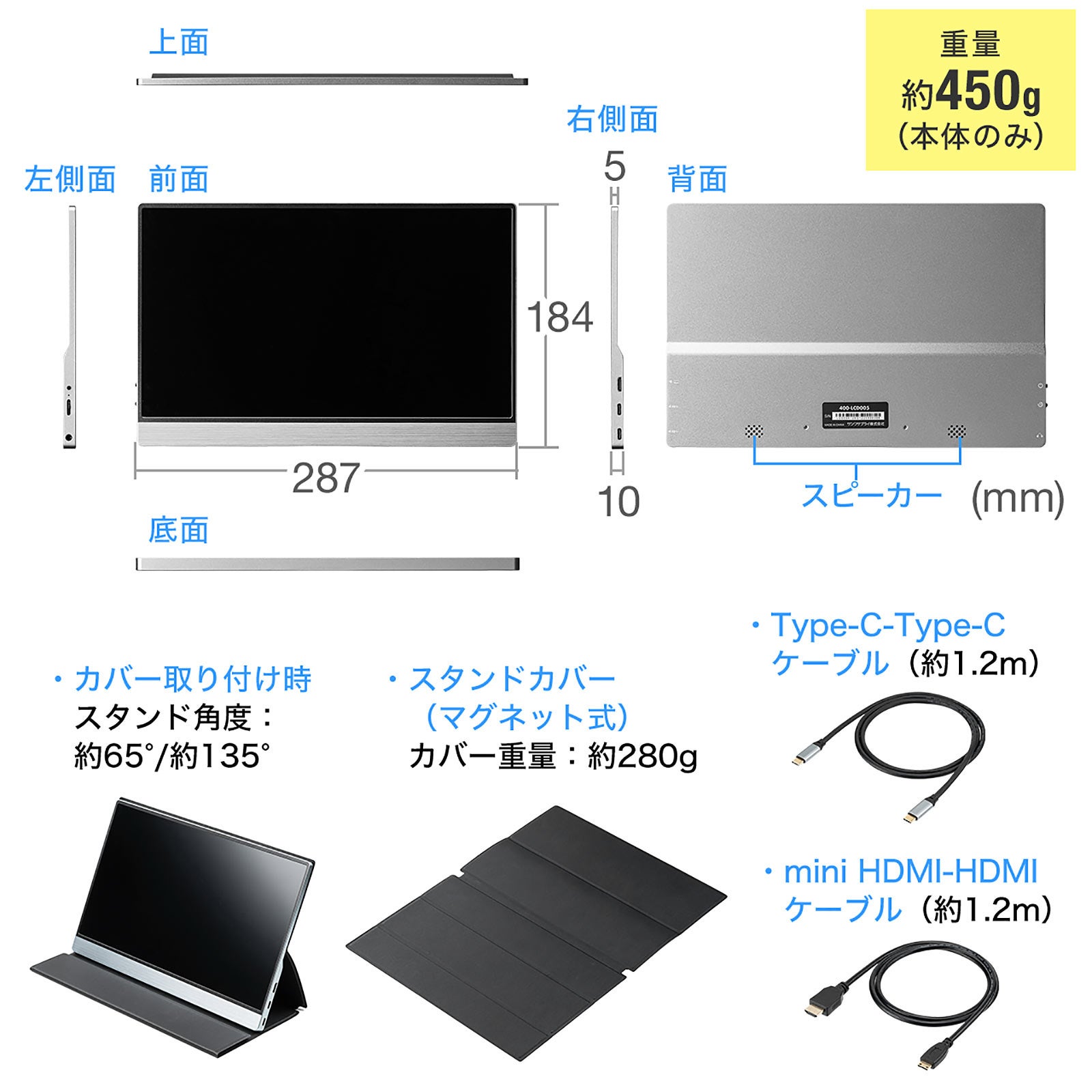 モバイルモニター 12.5インチ フルHD Type-C/miniHDMI接続 スピーカー内蔵 薄型 軽量450g スタンドカバー PC/Mac/Nintendo Switchなど対応
