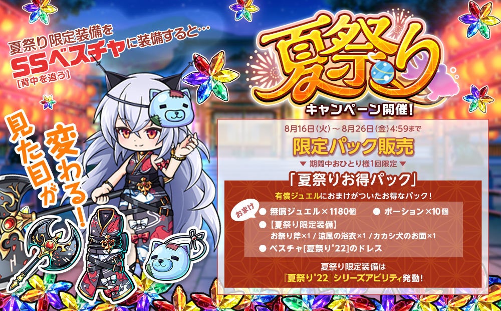 SS限定装備やベスチャのミニキャラの衣装が付いてくるお得なパックを販売いたします。
