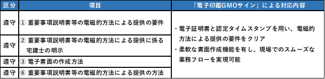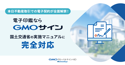 GMOインターネットグループのGMOグローバルサイン・ホールディングス株式会社(代表取締役社長:青山 満 以下、GMOグローバルサイン・HD)が開発・提供する電子契約サービス「電子印鑑GMOサイン」は、本日2022年5月18日(水)に施行された「改正宅地建物取引業法」(以下、改正宅建業法)により不動産取引での電子契約が全面解禁されるにあたり、国土交通省が発表したガイドライン『重要事項説明書等の電磁的方法による提供及びITを活用した重要事項説明実施マニュアル』(※1)(以下、実施マニュアル)に記載された運用内容に完全対応しているため、不動産事業者が安心して利用できる電子契約サービスであることをお知らせいたします。