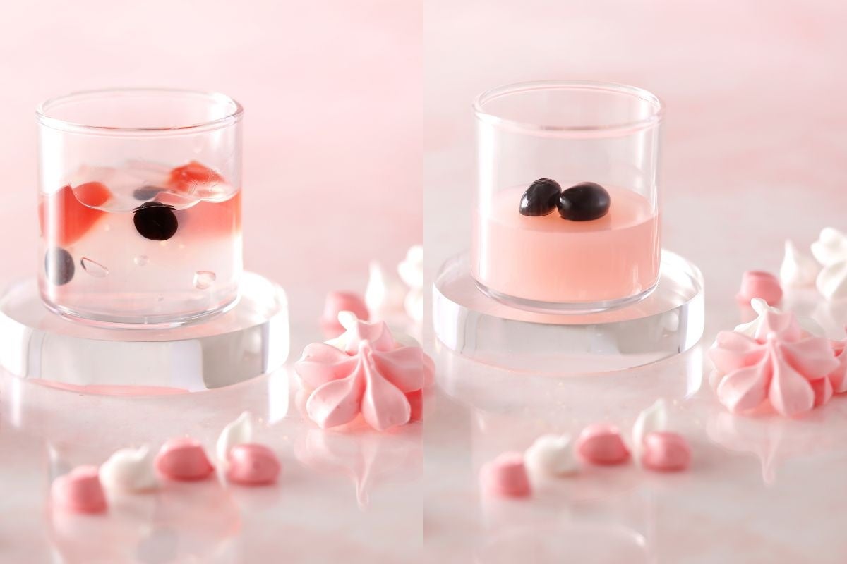 春の訪れを感じさせる和スイーツ2種が、期間限定で新たにラインアップ。桜風味のくず餅ゼリーに黒蜜あんこ、塩えんどう豆、桜の塩漬けをあしらった『桜くず餅ゼリー』は、やさしい甘さとほのかな塩味が調和する上品な味わいに仕上げました。さらに、口どけの良い寒天にさくら寒天とあまおう寒天を重ね、やわらかく弾力のある桜の求肥を添えた『さくら寒天』も登場。桜の風味と彩りをお愉しみいただける、春ならではの和スイーツです。