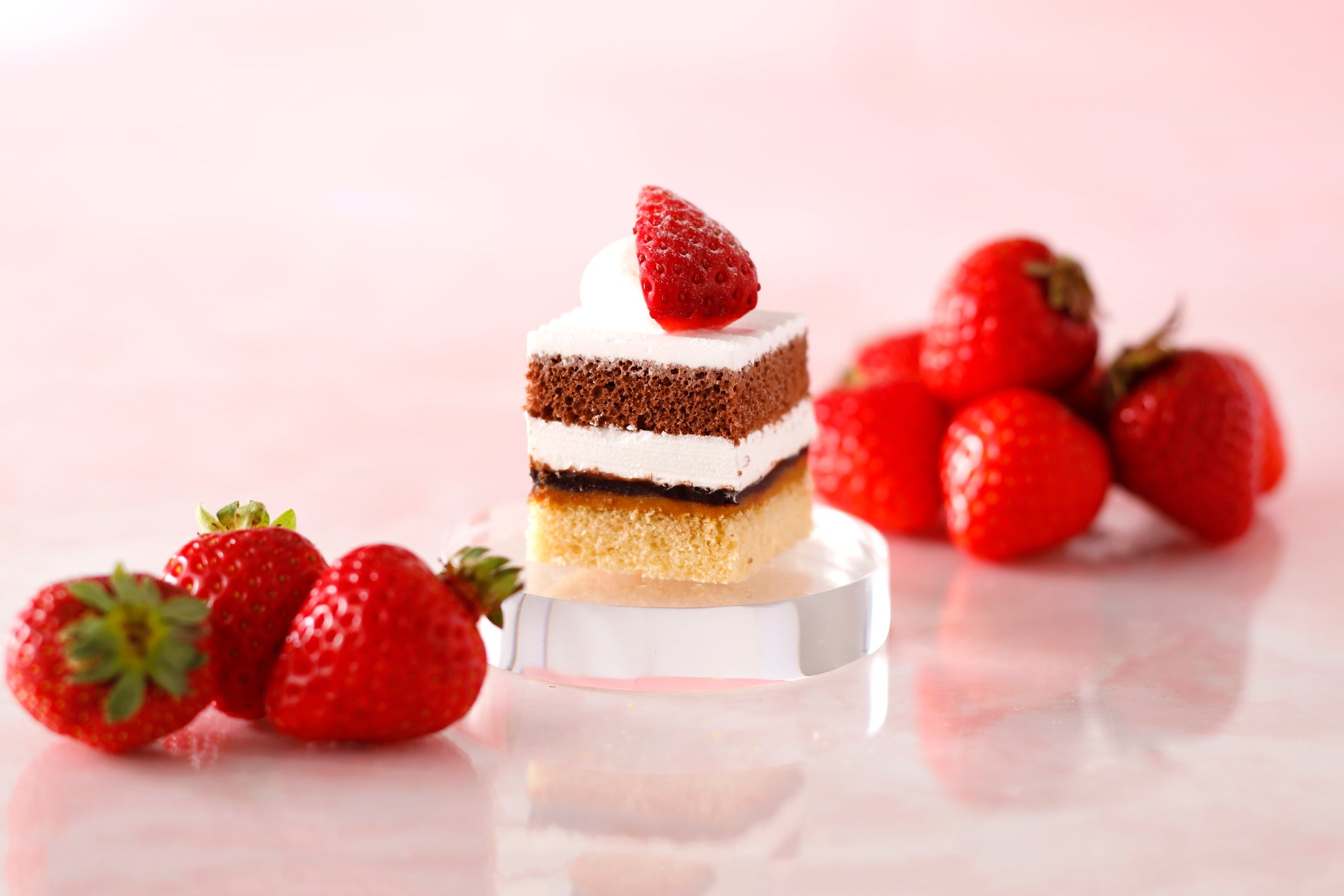 また、“スーパーシリーズ”の始まりを飾る『新スーパーあまおうショートケーキ』をはじめ、博多あまおうの魅力を存分に味わえるいちごスイーツも豊富にご用意しました。長崎県産「太陽卵」を使用したふんわり軽やかなスポンジ生地に、九州大牟田産の生クリームを合わせた同商品は、素材の美味しさを最大限に引き出した逸品です。さらに、キャラメリゼしたヘーゼルナッツやアーモンドの香ばしい食感がアクセントの『スーパーチョコレートショートケーキ』、あまおう・生クリーム・黒蜜あんこを包み込んだ『あまおうロール』など、多彩なラインナップをお愉しみいただけます。