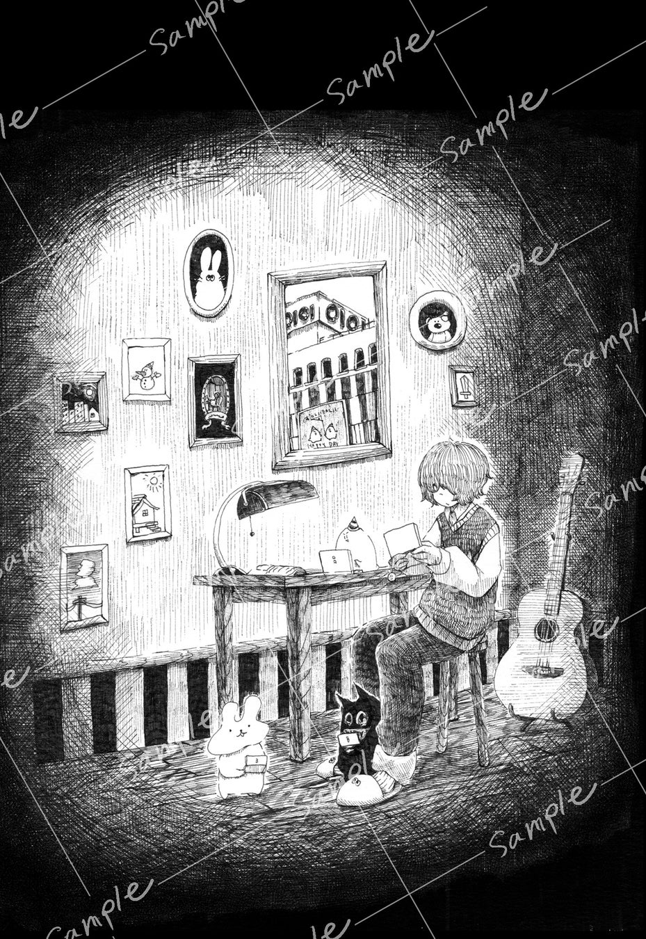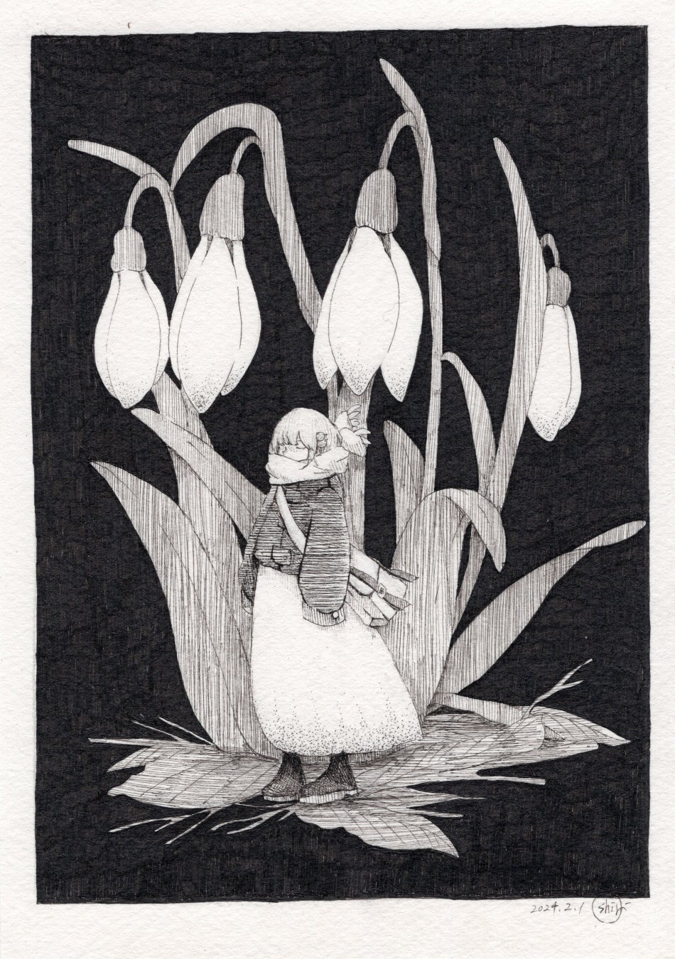 黒いボールペンと白い紙から繊細な世界を紡ぎ出すペン画家。自分の思想を強く反映した「プライベートワーク」、他人の気持ちを受け取り制作した「クライアントワーク」という二つの観点から絵を描いています。
