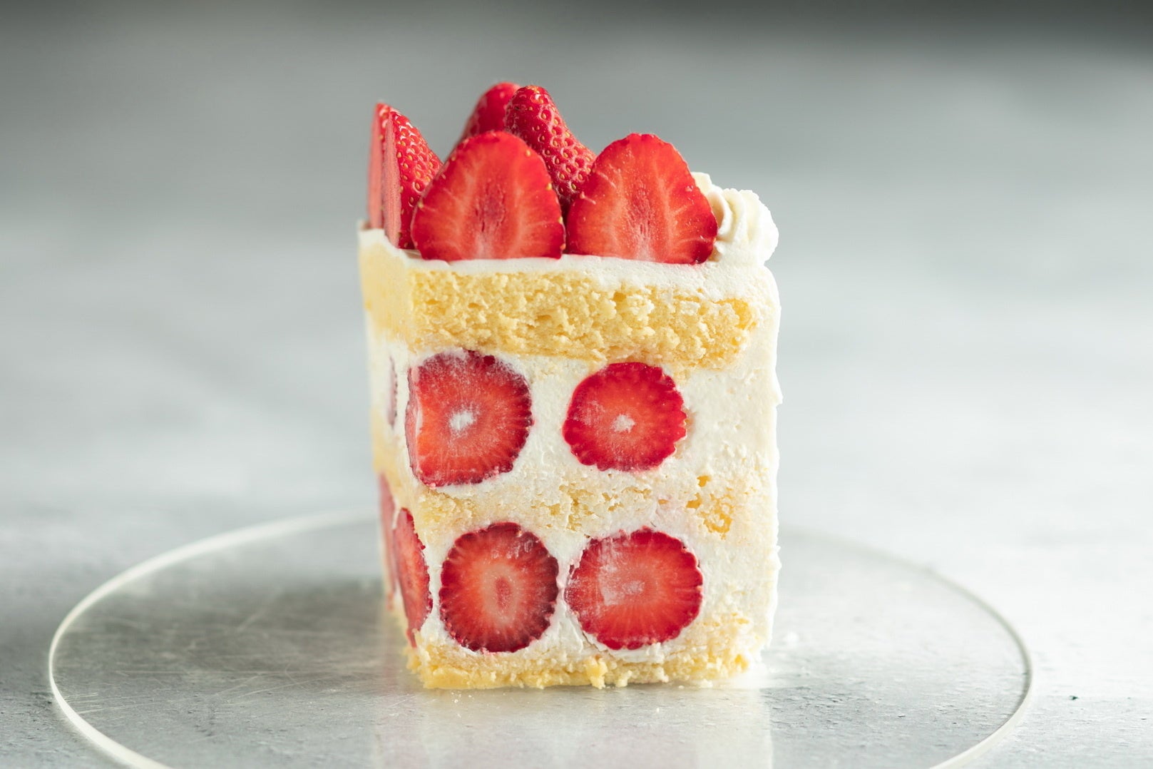 黄身が濃く弾力のある川崎産「黒川の地玉子」と、さぬき和三盆、福岡県産小麦を合わせたスポンジに、北海道根釧の生クリームと福岡県産「あまおう」を贅沢に丸ごとサンドしました。シンプルながらも素材の味わいを引き立てた上質なケーキをお楽しみください。