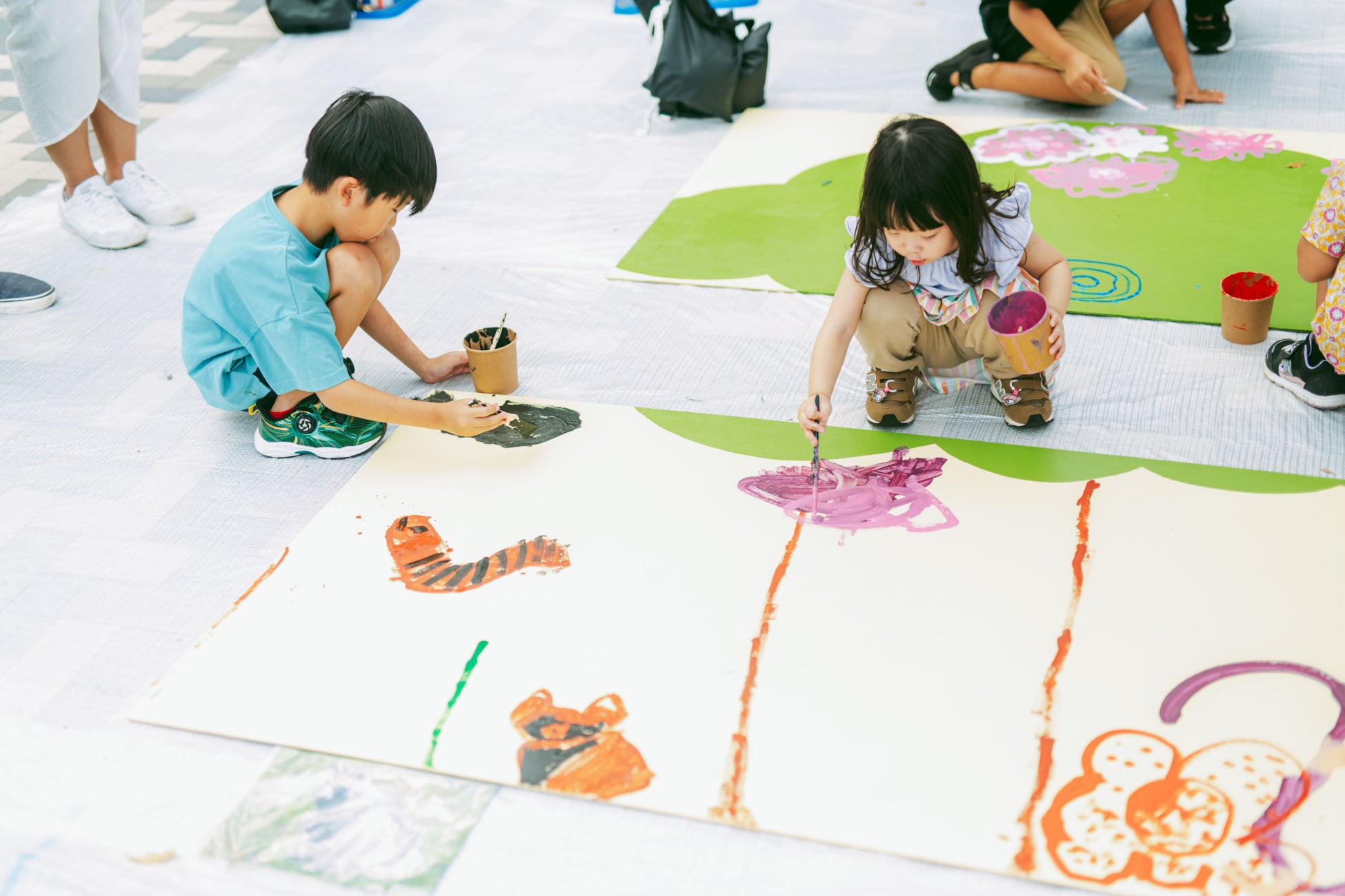 調布市に生息する動植物の中から好きなものを選び、約100名のこどもたちが自由に大きな絵を描きました。