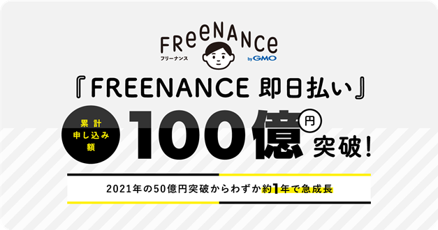 「FREENANCE byGMO」のフリーランス特化型ファクタリングサービス『FREENANCE即日払い』が累計申し込み額100億円を突破!