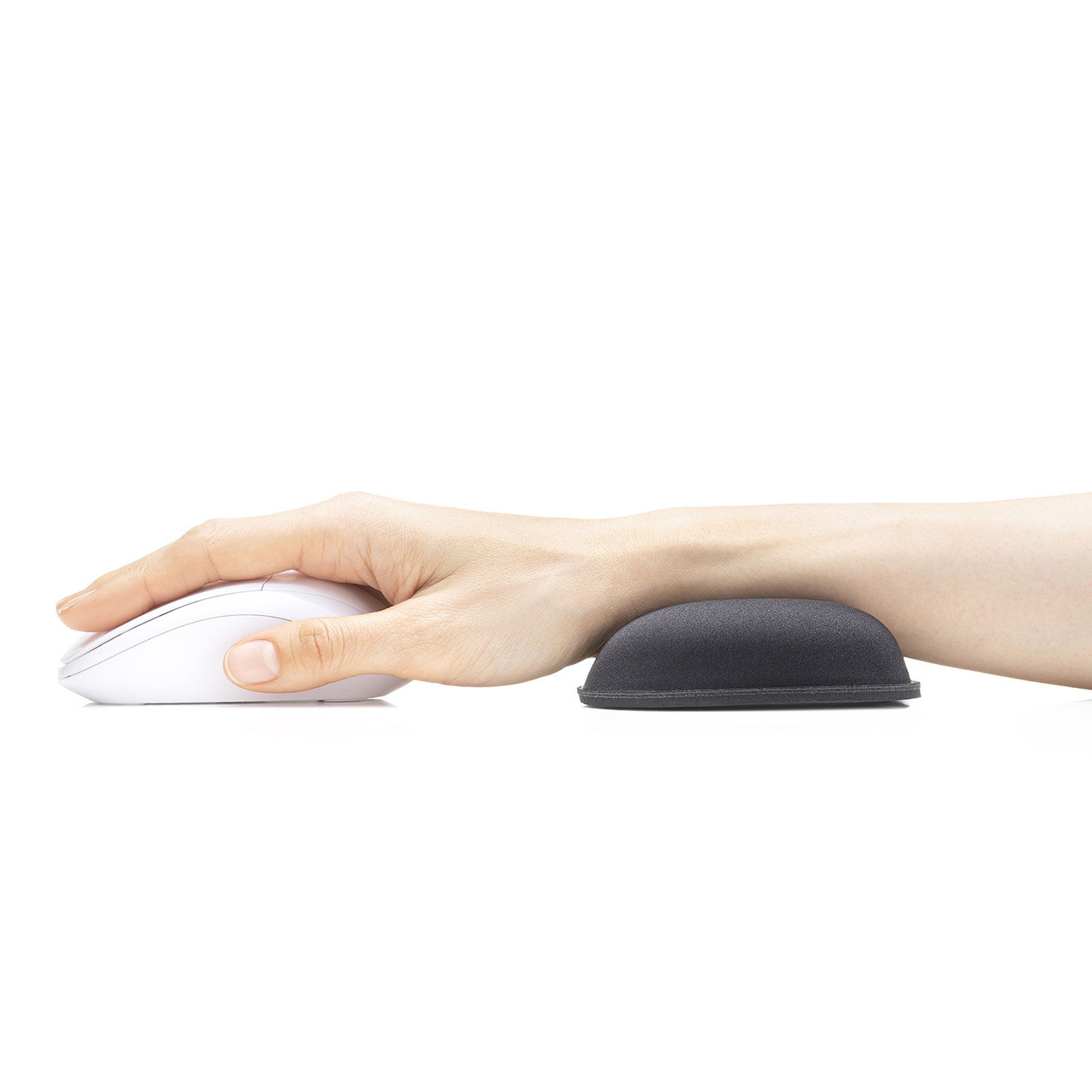 通常のウレタンフォームに比べ反発弾性が非常に小さく、ゆっくり沈み込んでゆっくり戻る特性があります。真ん中が凹んでいるので、手首が安定し、長時間使っても疲れにくい形状です。