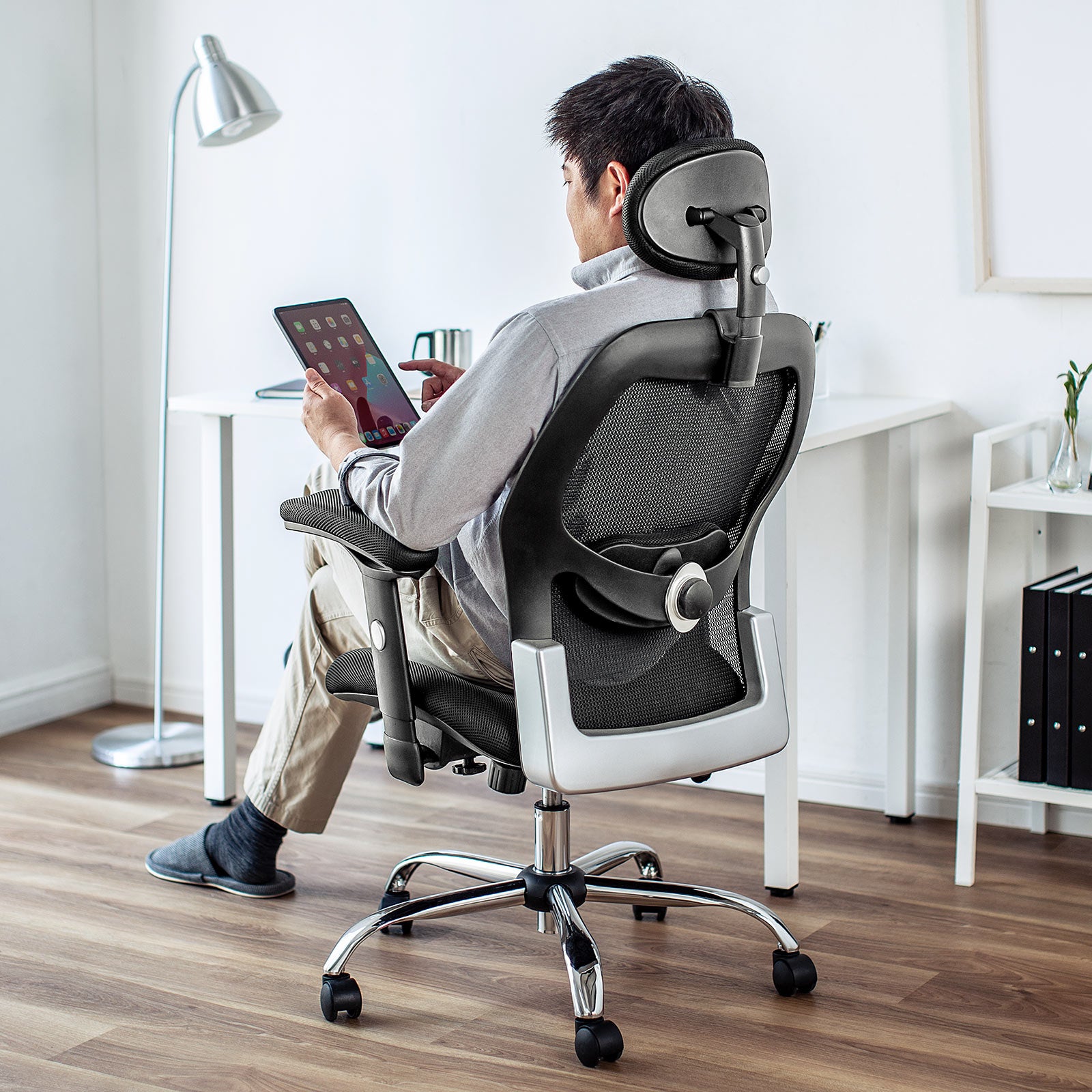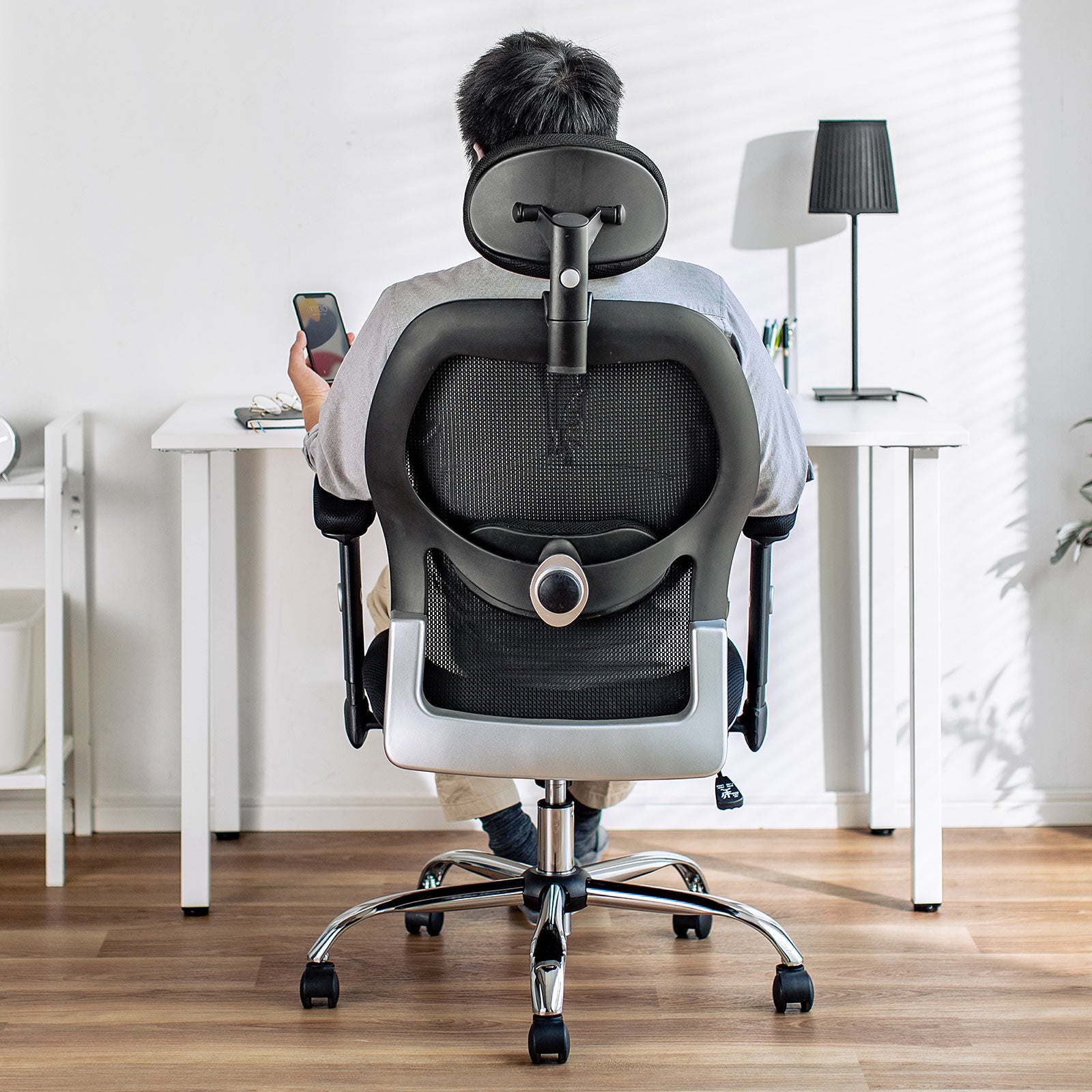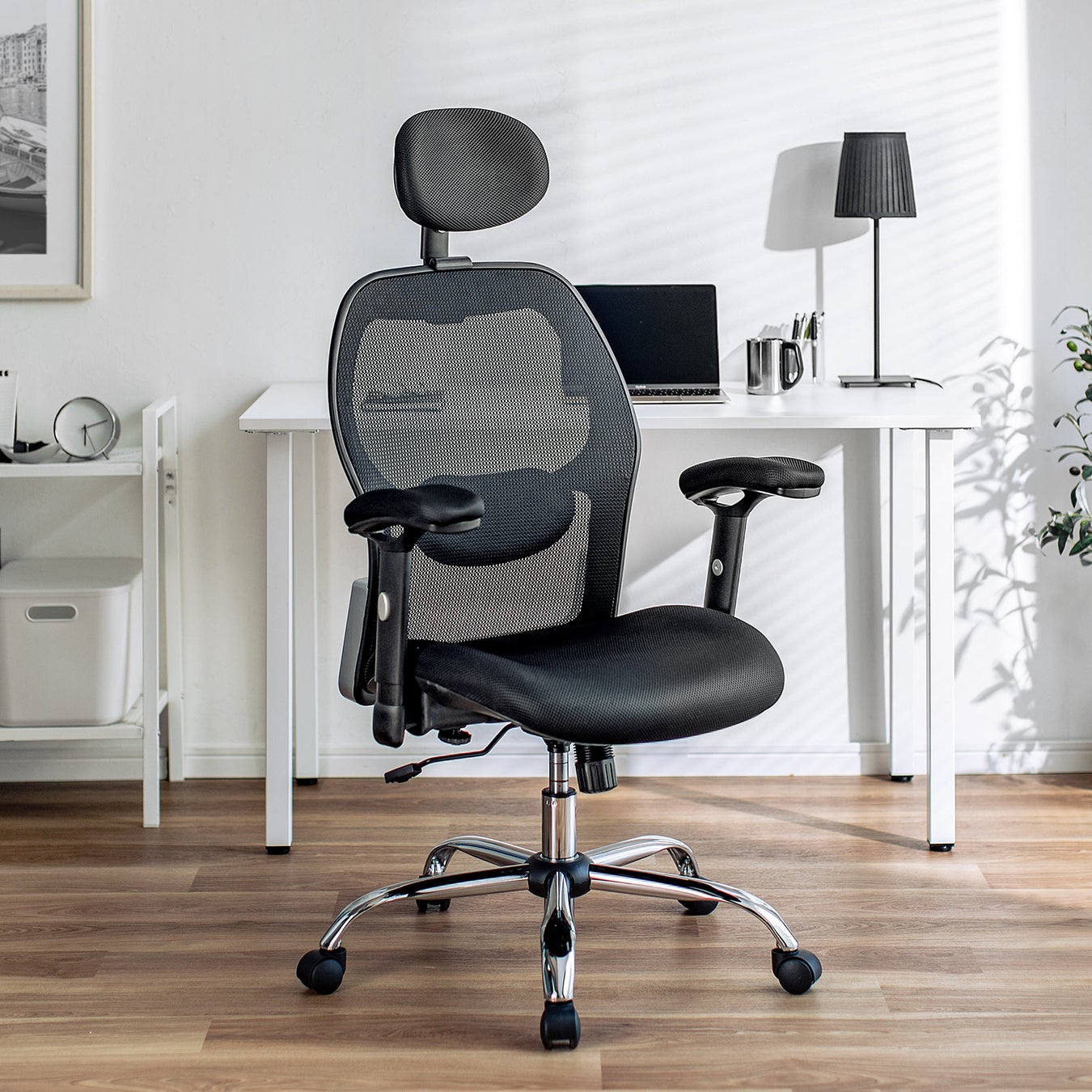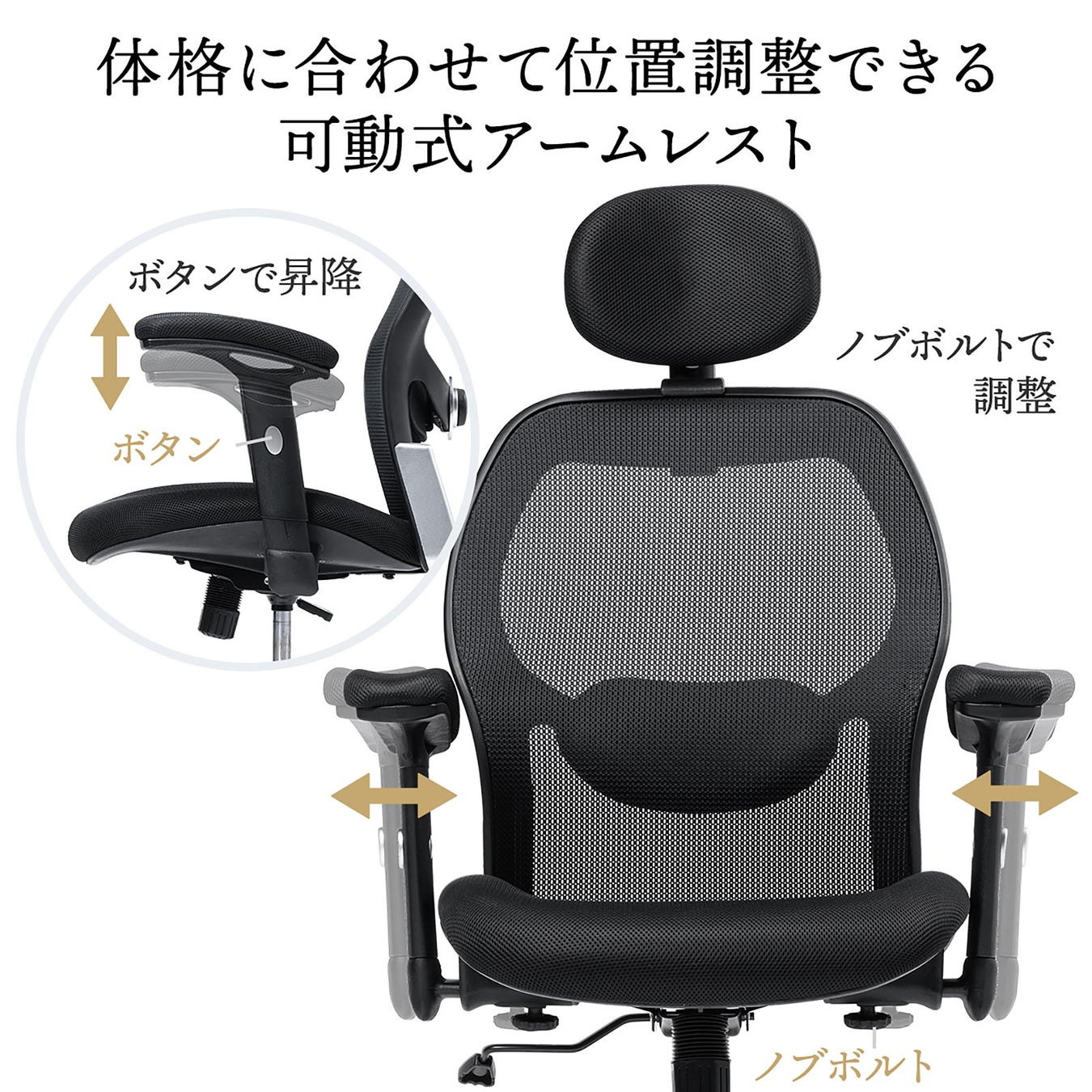 メッシュチェア オフィスチェア ハイバック 背座一体ロッキング 可動式アームレスト ヘッドレスト ランバーサポート 肉厚クッション