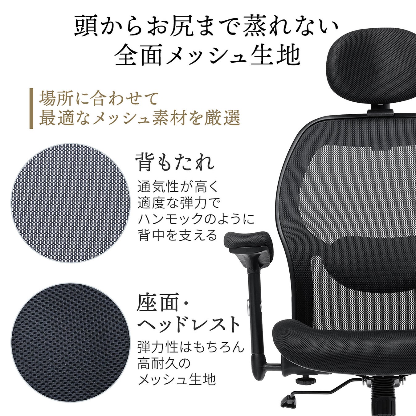 本製品は、オールメッシュで長時間座っても快適に作業ができるオフィスチェアです。