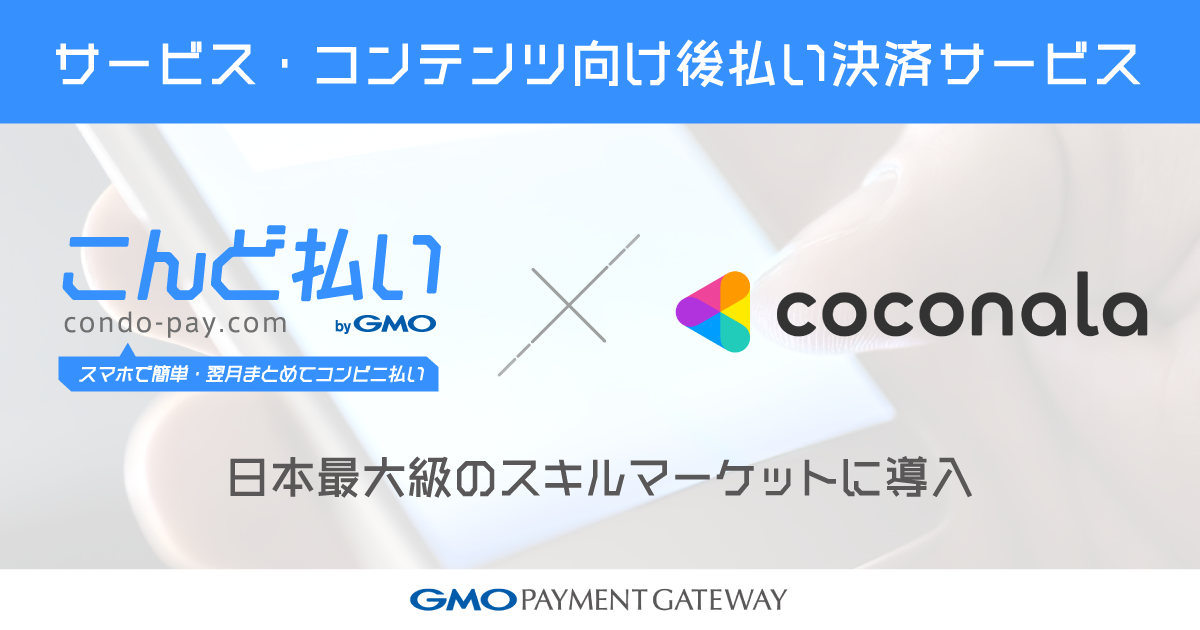 GMOインターネットグループにおいて、総合的な決済関連サービス及び金融関連サービスを展開するGMOペイメントゲートウェイ株式会社(東証プライム:証券コード 3769、代表取締役社長:相浦 一成 以下、GMO-PG)は、サービス・コンテンツ向け後払い決済サービス「こんど払い byGMO」を、株式会社ココナラ(東証グロース:証券コード 4176、代表取締役社長CEO:鈴木 歩)が提供する得意を売り買いする日本最大級のスキルマーケット「ココナラ」に、本日2022年5月23日(月)より提供いたします。