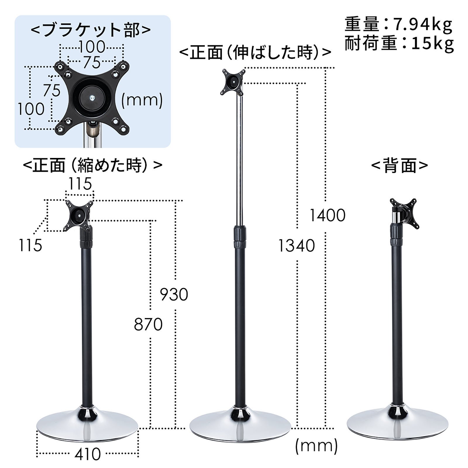 モニタースタンド 床置き 高さ調整 小型 27インチ対応 耐荷重15kg