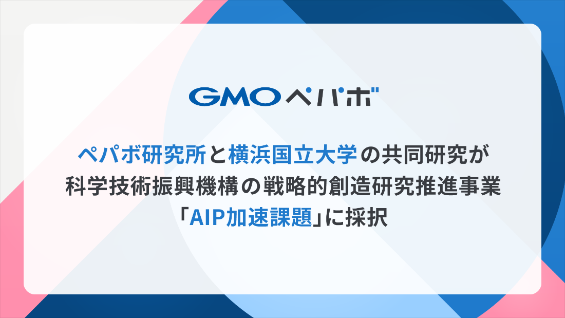 「ペパボ研究所」と横浜国立大学の共同研究が、科学技術振興機構の戦略的創造研究推進事業「AIP加速課題」に採択