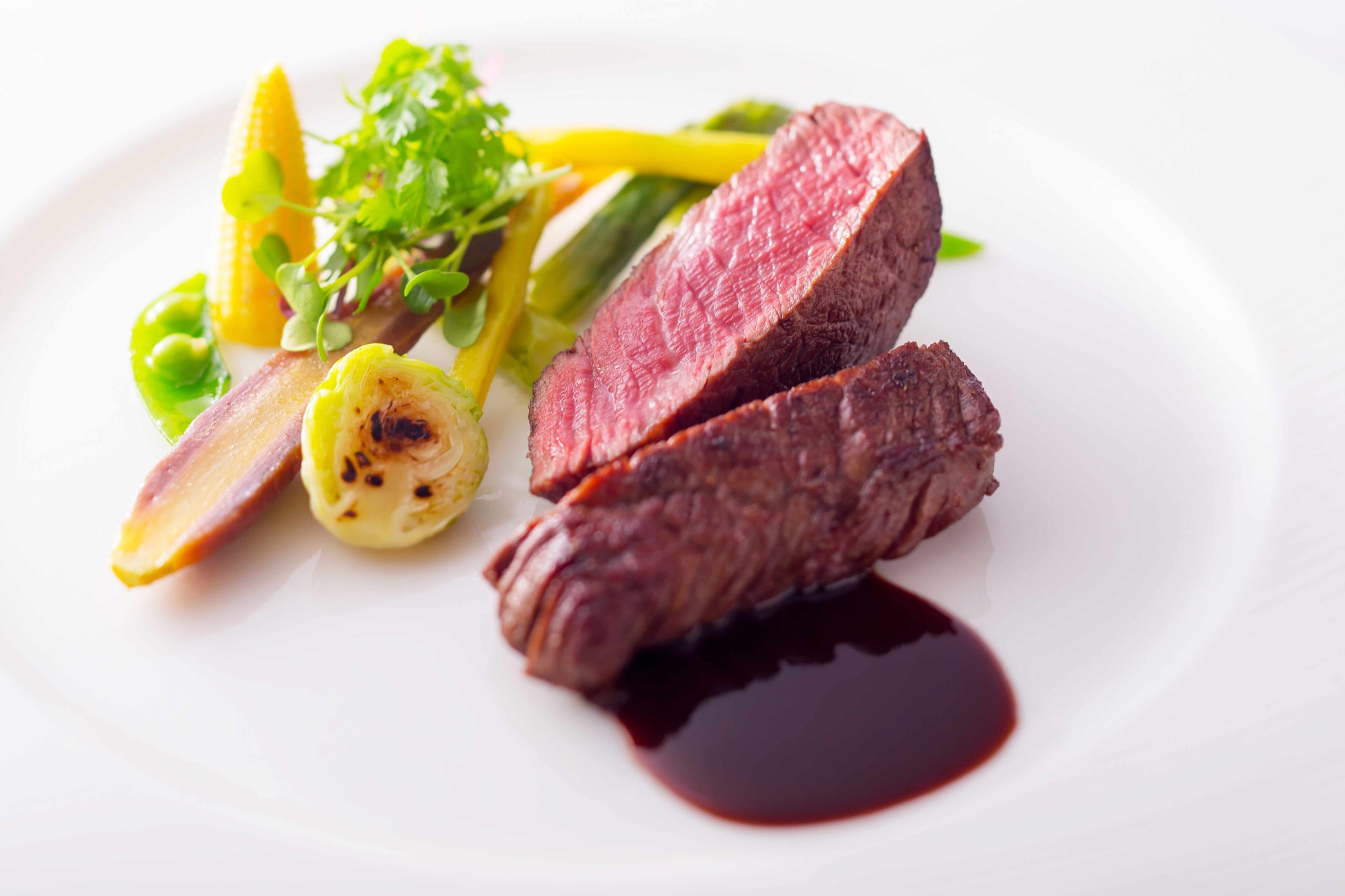 [メニュー]旬菜のオードブル/本日のスープ/鮮魚の鉄板焼/国産牛ロース(80g)/焼野菜/お食事一式/デザート
