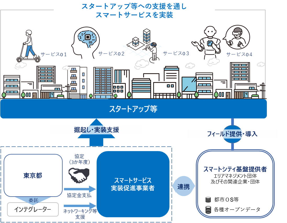 このたび、東京都と連携してスタートアップによるサービス実装を支援する「スマートサービス実装促進事業者」(3者)が決まりましたのでお知らせいたします。