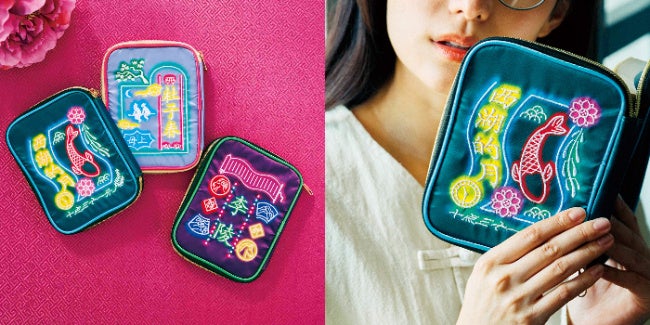 開国以来一気に進んだ西洋化に対し、古き良き時代を懐かしむ大正時代の日本の文壇に到来した中国ブームに着目。近くて遠い異国を舞台に綴られた作品をモチーフに、ほんのりレトロな雰囲気の「ネオンサイン」風に仕立てられたポーチです。小物入れとしてだけでなく、文庫本をセットすることもできるので、ブックカバーとしても楽しめます。