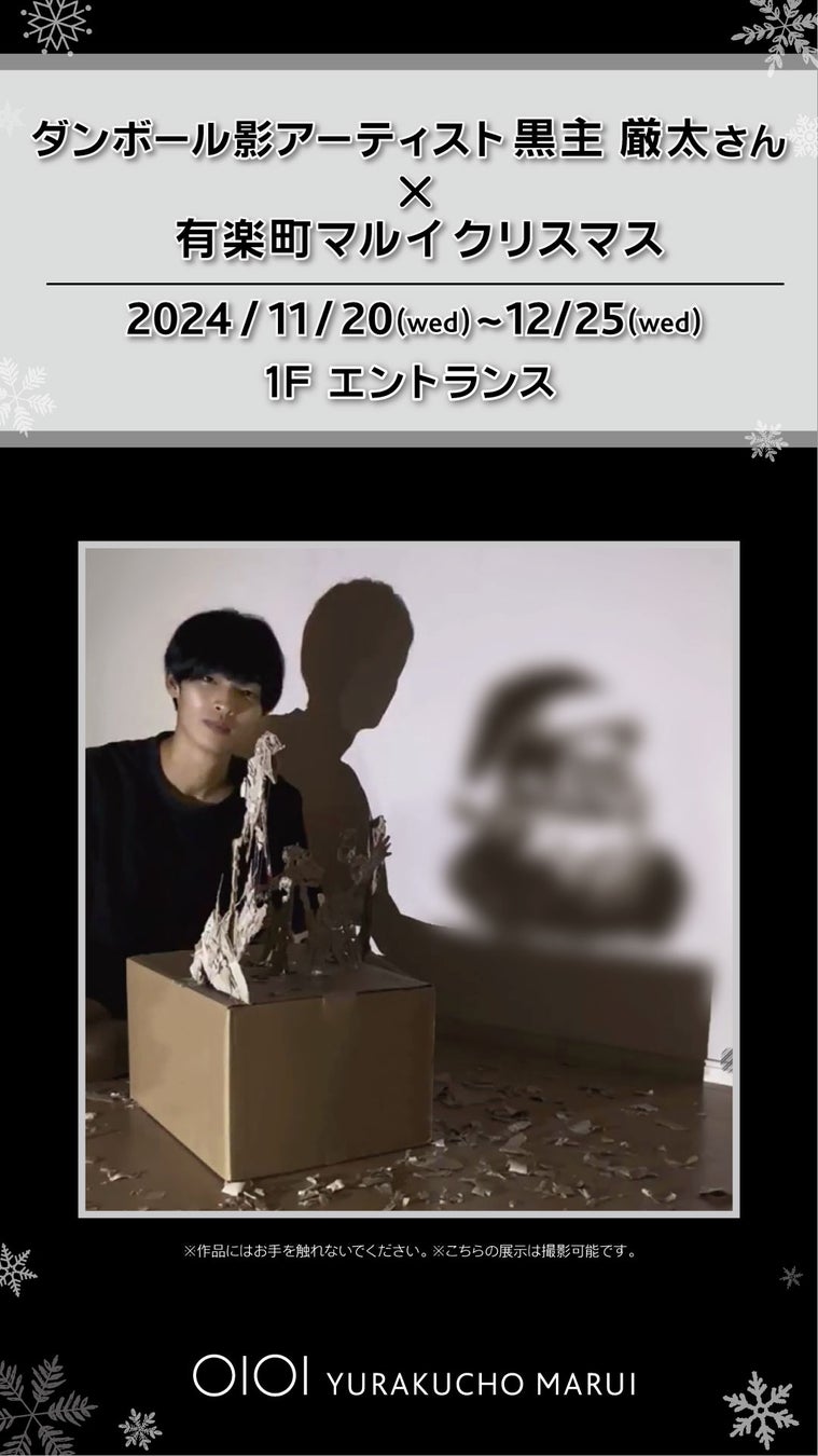 有楽町マルイ(株式会社丸井、本社:東京都中野区、取締役社長:青野 真博)は、1Fエントランスにて、ダンボール影アートで注目をあびる黒主 厳太さんによる『コラボクリスマスツリー』を設置いたします。日本国内では初のリアル作品展示となります。