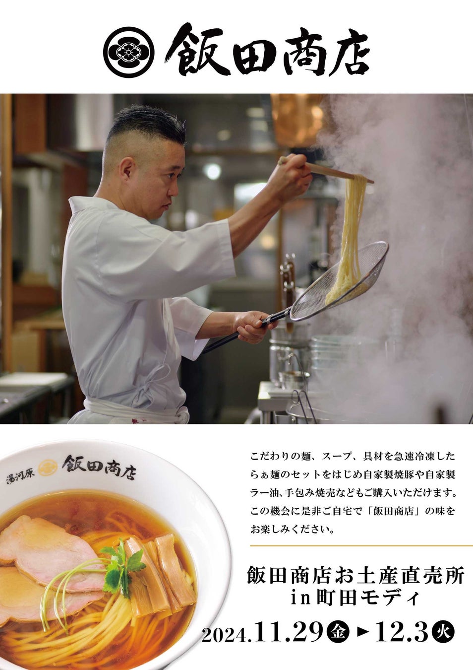 町田モディ(株式会社丸井、本社:東京都中野区、取締役社長:青野 真博)2Fに、『食べログ』ラーメン部門全国1位に君臨する『らぁ麺 飯田商店』のポップアップショップとして、湯河原駅前にある『飯田商店お土産直売所』が期間限定でオープンいたします。