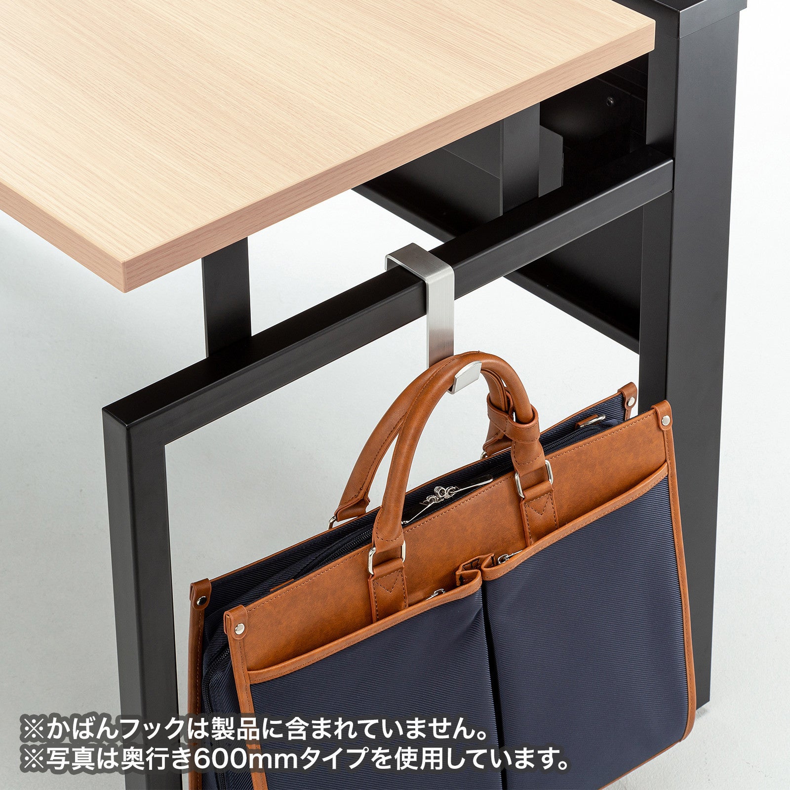 また、デスクサイドのフレームにフックを吊るすことができるので、バッグやケーブルを掛けておくのに便利です。