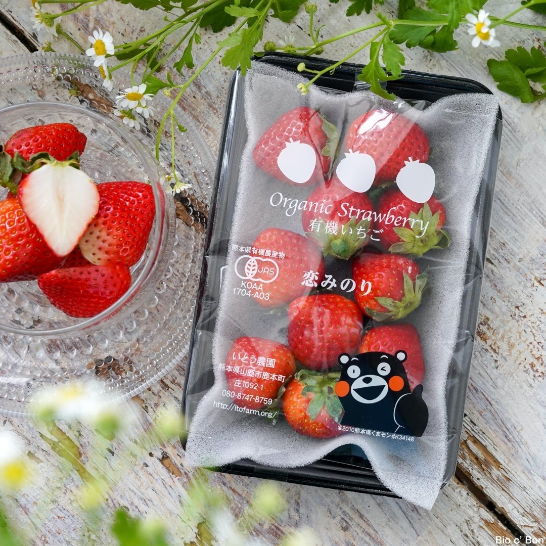 甘酸っぱい真っ赤ないちごはバレンタインにもおすすめです。国内で数少ない有機JAS認証を取得したいちごを生産している、熊本県「いとう農園」から「恋みのり」または「ゆうべに」が届きます。いとう農園ではハウス内を限りなく自然の森に近い環境にし、微生物や生き物たちにもいちごを美味しくする仲間として手伝ってもらっています。