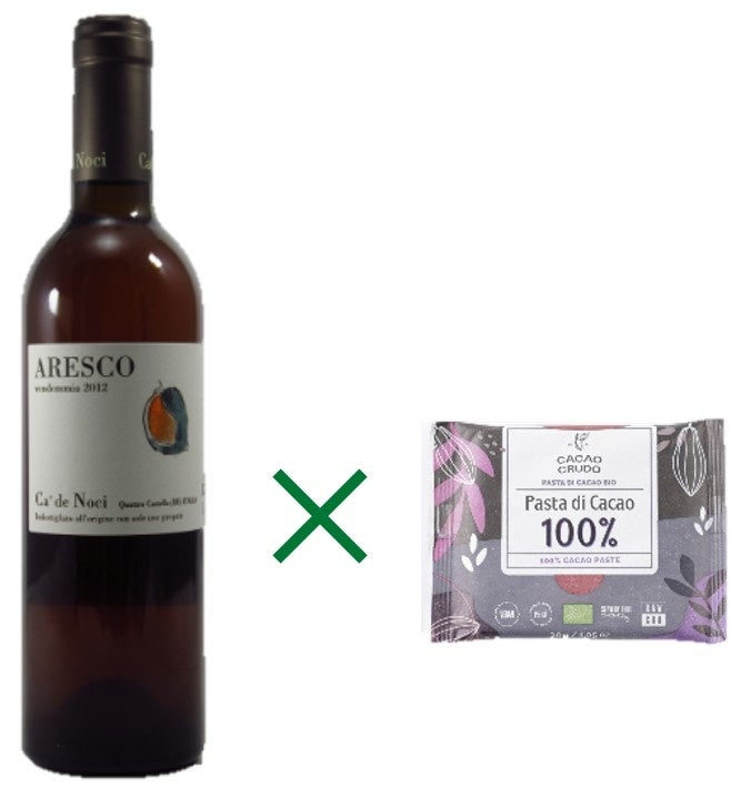 テロルデゴが持つ強めのベリーの香りとラズベリーチョコの相性は最強です!また、しなやかでのびやかなタンニンは、スミレのような香りのローチョコレートによく合います。