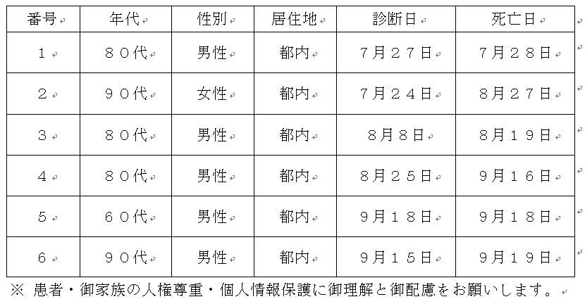 都内で新型コロナウイルスに感染した方が死亡されましたのでお知らせします。