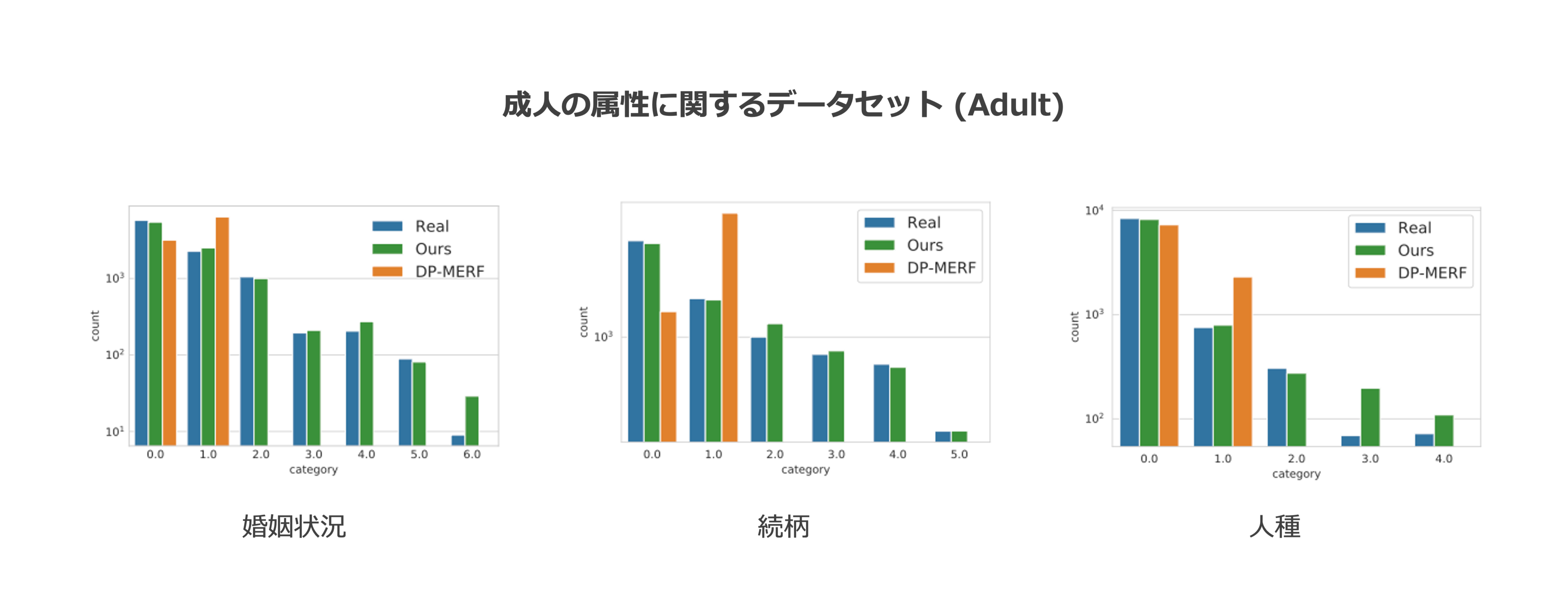 ● 実験による評価:妥当なプライバシーレベルにおけるデータ生成での提案手法と既存手法の比較