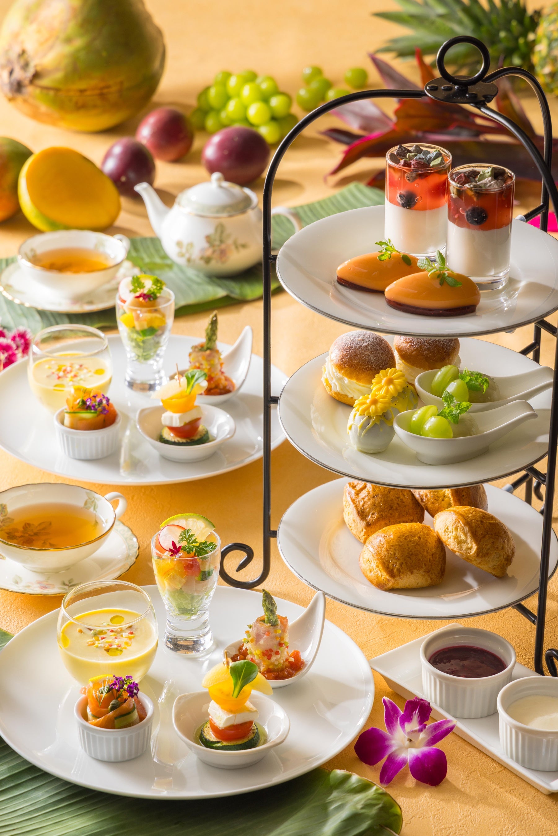 旬のフルーツや夏野菜を用いたスイーツとセイボリーが並ぶ、夏をテーマにしたアフタヌーンティーが今年初登場。