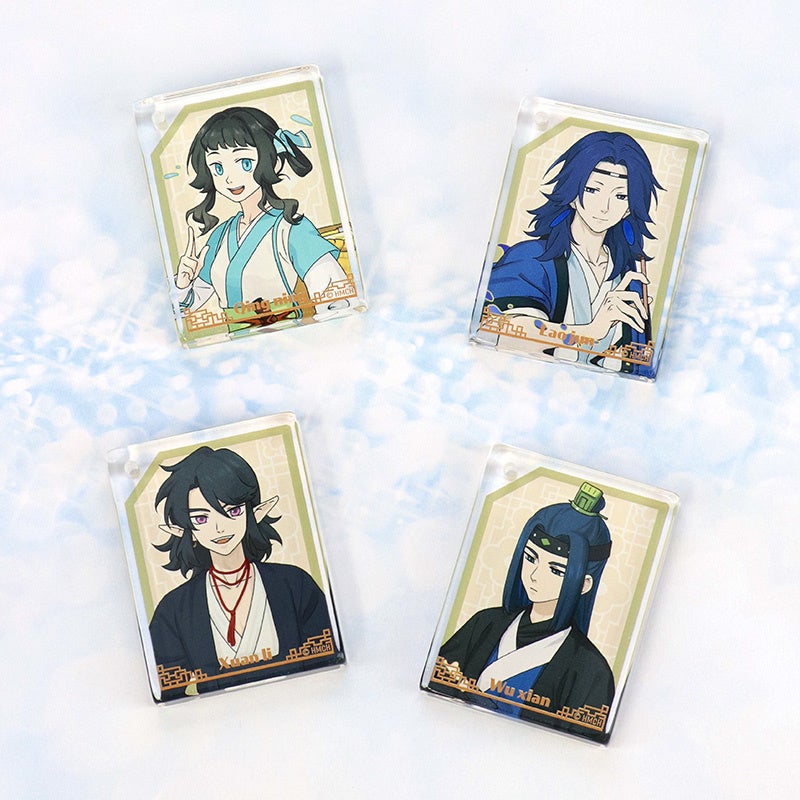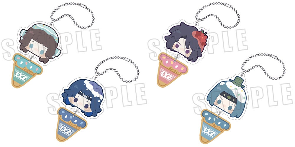 株式会社アニメイトより、「藍渓鎮」公式描き下ろしイラストを使用したスクエア缶バッジ(全4種)、タペストリー(全4種)、クリアファイルセット、メルティーブロックキーホルダー(全4種)、アクリルスタンド(全4種)と、キャラクターをアイス風にデザインしたアイスキーホルダー(全4種)が発売決定。