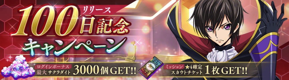 DMM GAMES×f4samurai、『コードギアス 反逆のルルーシュ ロストストーリーズ』のリリースから100日を経過!100日キャンペーンを開催!