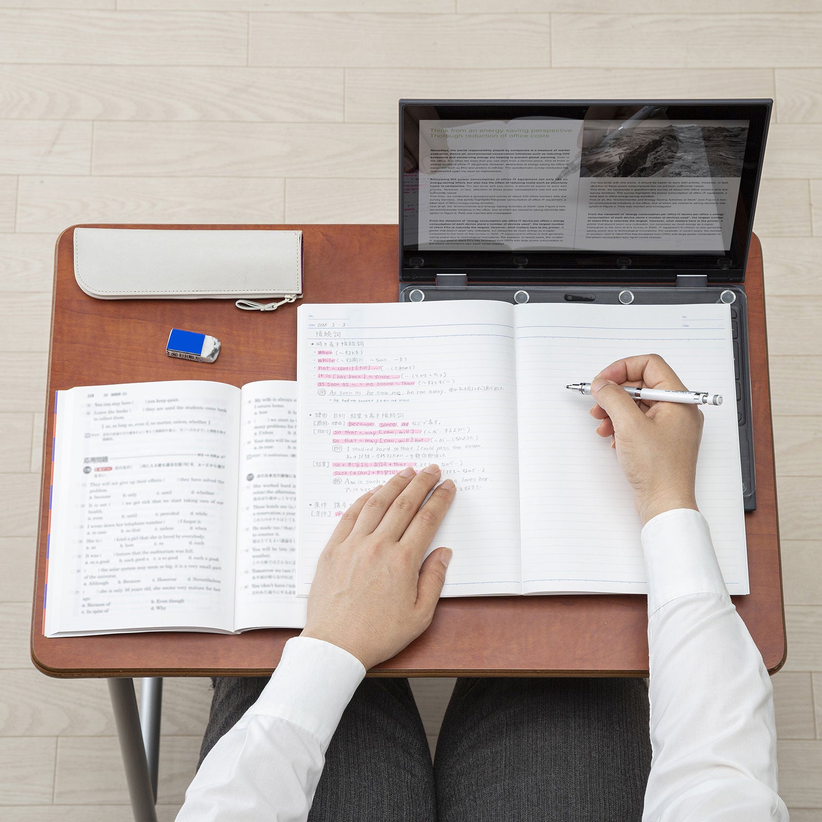 ノートパソコンを使う授業では、机のスペースが狭くて教科書やノートの置き場所に困ることはありませんか?
