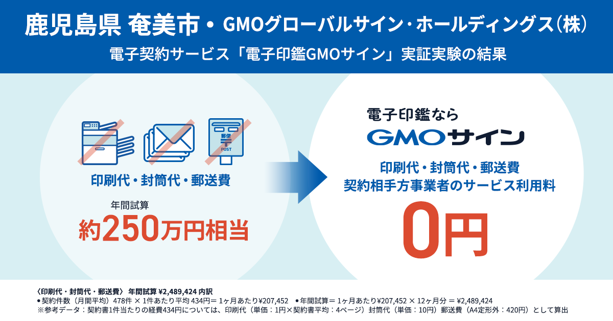 鹿児島県奄美市が全国初の「ハイブリッド署名」電子契約サービスを採用 「電子印鑑GMOサイン for 行革DX」の活用により年間約250万円の郵送費等コストを削減へ