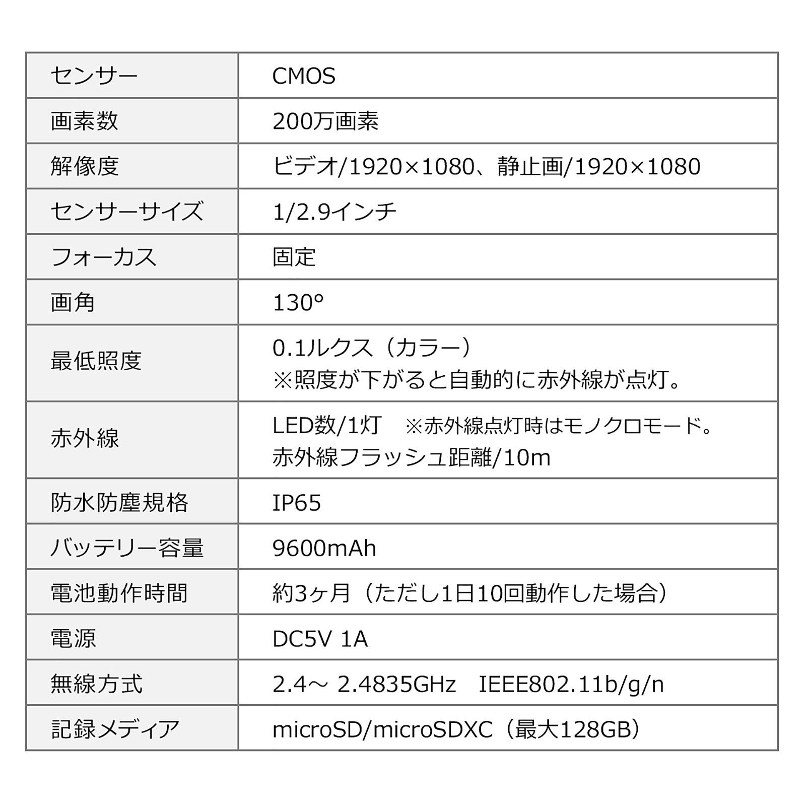 ネットワークカメラ 屋外用 IP65 電源不要 Wi-Fi 無線 防犯 夜間撮影 動体検知 相互音声会話 SDカード録画 スマホ通知 ホワイト