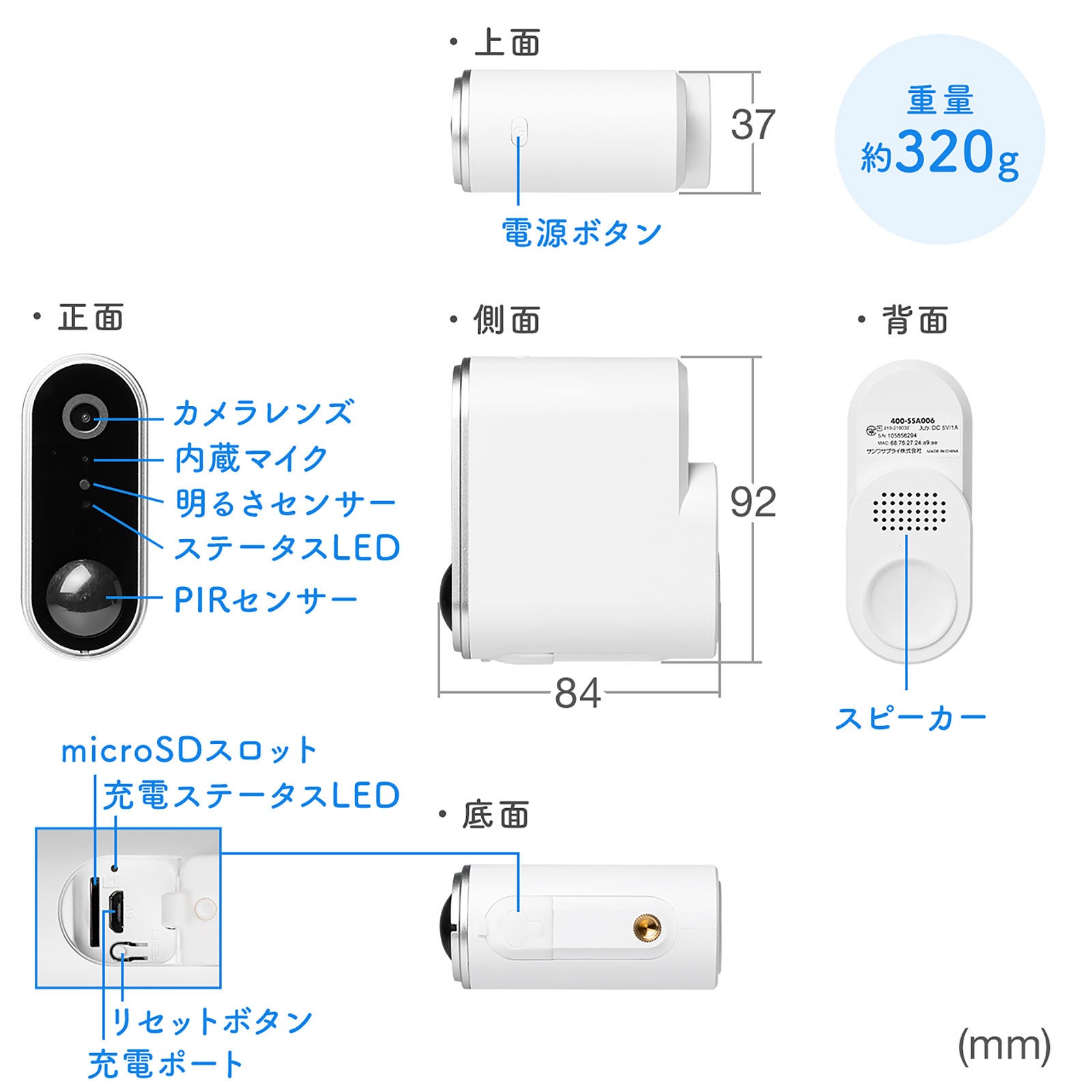 サンワサプライ株式会社(本社:岡山市北区田町1-10-1、 代表取締役社長 山田 和範)が運営している直販サイト『サンワダイレクト』では、バッテリー搭載型で配線や電源は不要、動体検知で録画とスマホ通知が可能で、相互音声会話機能も搭載している防犯や見守り用途に最適なネットワークカメラ 「400-SSA006」を発売しました。
