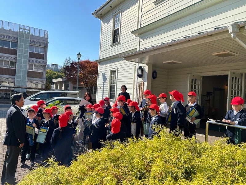 当日は那須保友学長も飛び入り参加し、児童たちに大学や建物の歴史について説明しました。
