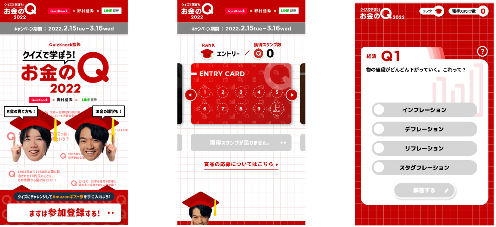 【野村證券とLINE証券が共同開催】「QuizKnock監修 クイズで学ぼう!お金のQ 2022」キャンペーンについて