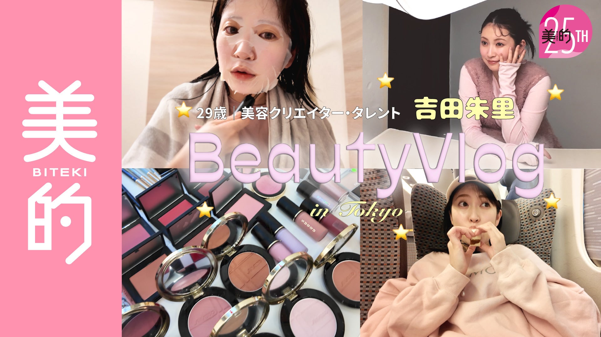 ●「【吉田朱里×美的 Vlog】撮影前日のナイトルーティン&『美的』撮影の裏側に密着!スペシャルケアから最新ポーチの中身を一挙公開」