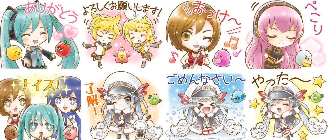 今回のコラボを記念して、ここでしか手に入らない『初音ミク』のコラボLINEスタンプ(全8種類)を無料でプレゼントします。入手方法については、ゲーム内のお知らせをご確認ください。