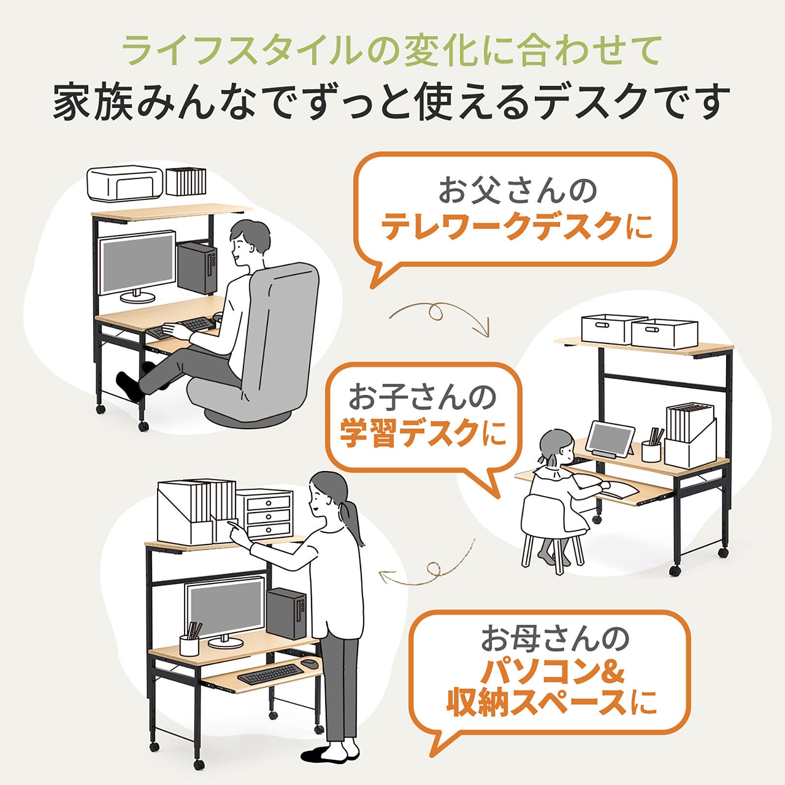 ローデスク 高さ3段階調整 幅90cm 奥行43cm キャスター付き
