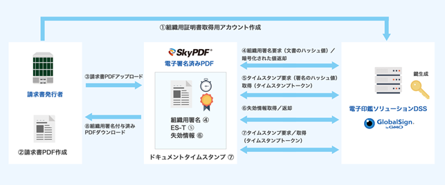 この連携により、「SkyPDF」上でGMOグローバルサインの組織用電子証明書の発行を行い、電子署名を文書に付すことがワンストップで可能となり、電子請求書(電子インボイス)等の高い信頼性が求められる電子文書を効率的に作成できるようになりました。