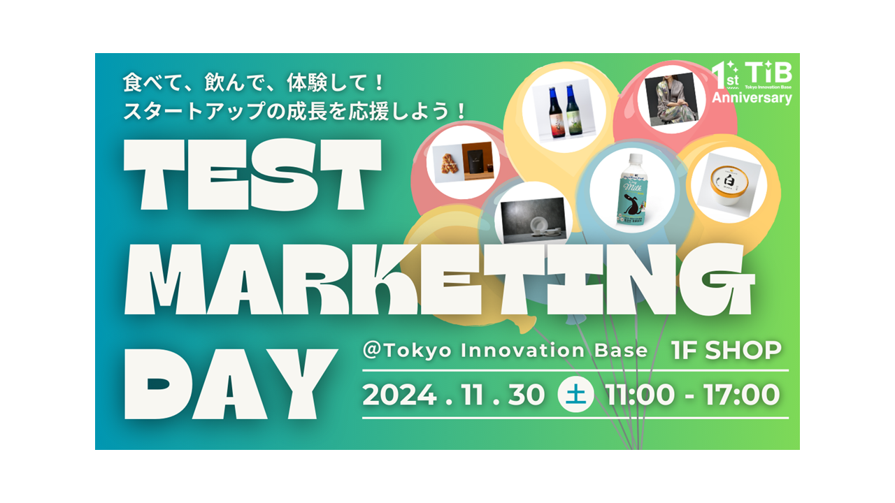 Tokyo Innovation Baseのプレオープンから1周年となる期間を「TIB 1st Anniversary WEEK」と位置付け、これまでの“NODE”(結節点)としての活動の到達点を表すイベントが開催されます。1F「SHOP」では「TEST MARKETING DAY」を開催。スタートアップの製品をお客さまが実際に体験したうえで、皆さまが感じたことをスタートアップに直接伝えていただき、企業の成長を後押しします。