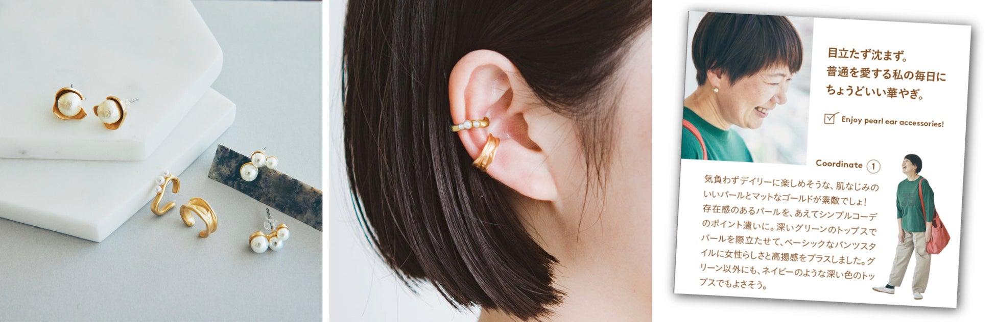 人気ブロガー&インスタグラマーの金子敦子さんと企画した、大人のおしゃれにぴったりなイヤアクセサリー3種類です。それぞれで着けても、重ねづけしても素敵に決まります。セットで金子さん流のコーディネートが学べるレター付きです。