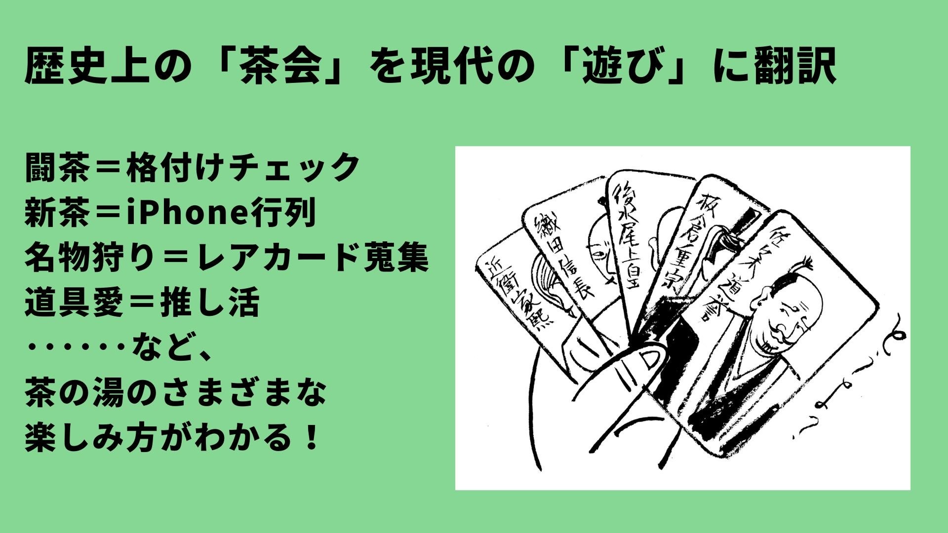 抹茶の味を当てる「格付けチェック」さながらの対戦ゲーム「闘茶」。天下人が自らお酌をするホームパーティのようなもてなし。天皇らが夜更けまで楽しんだ “パリピ” な大宴会・・・・・・。型にとらわれない茶の湯とは?