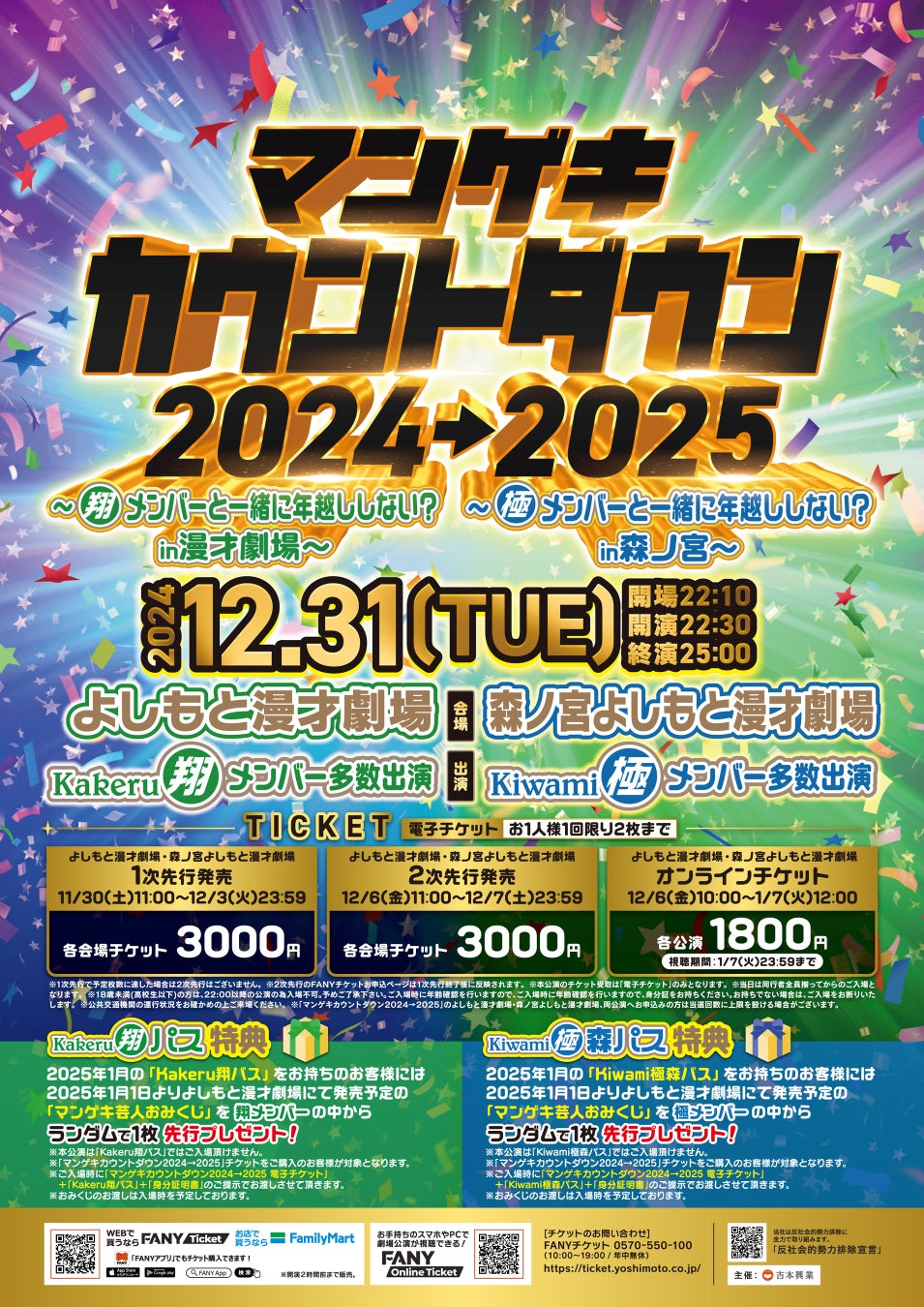 よしもと漫才劇場では『マンゲキカウントダウン2024→2025 ~翔メンバーと一緒に年越ししない?in漫才劇場~』を、森ノ宮よしもと漫才劇場では『マンゲキカウントダウン2024→2025 ~極メンバーと一緒に年越ししない?in森ノ宮~』を開催。