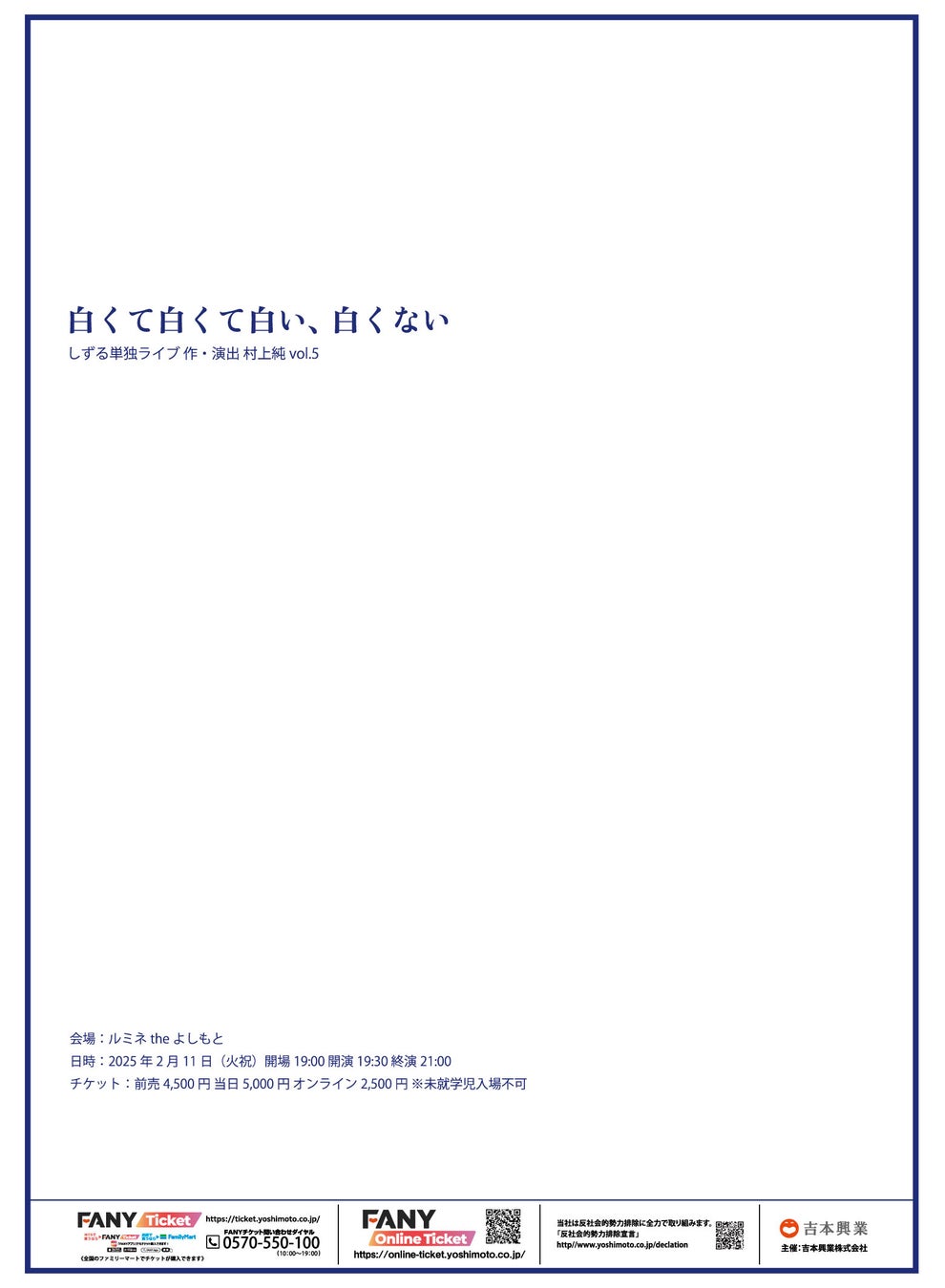 しずる単独ライブ「白くて白くて白い、白くない」作・演出 村上純 vol.5 開催概要